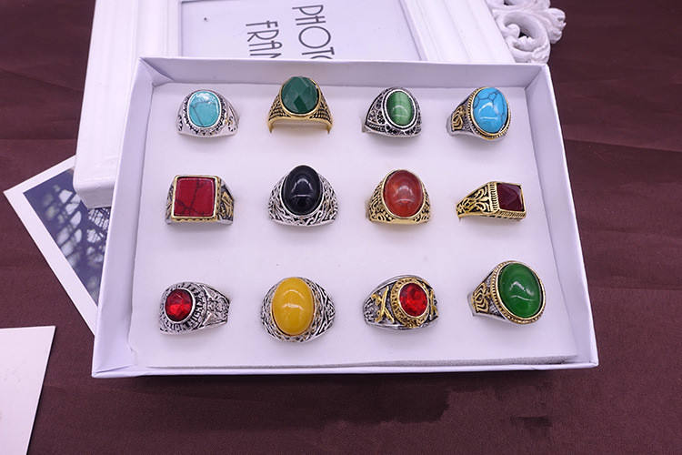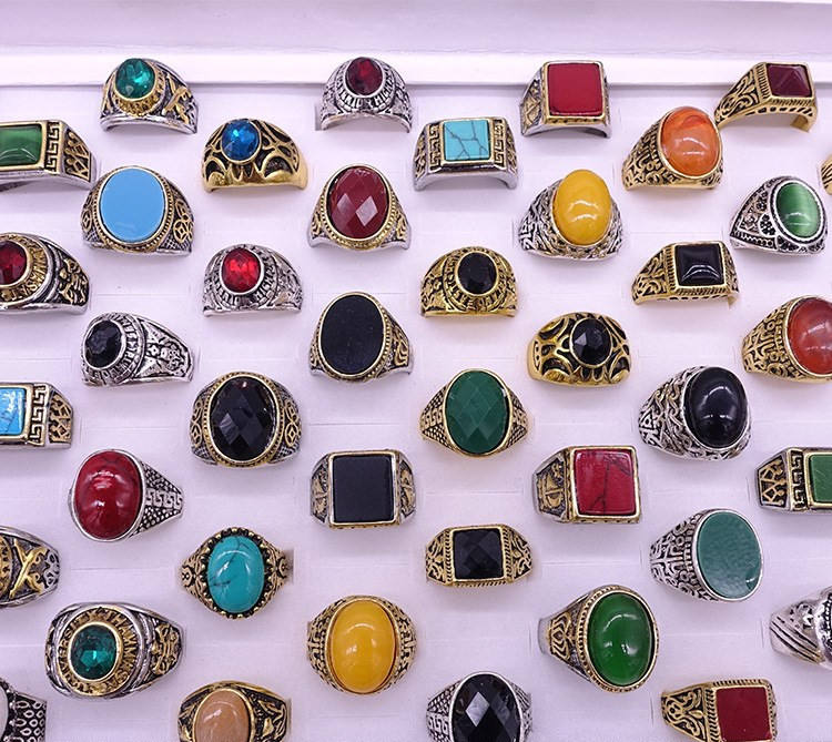 Men's Ring Electroplated Two-color Gold and Silver Mixed Size Mixed Color Hand Decorated Men's Stone Rings Jewelry Wholesale