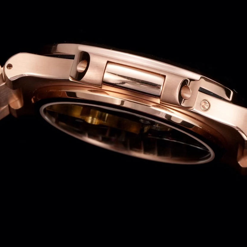 Montre pour homme avec boîtier en or rose, phase de lune, cadran noir avec date, polyvalente, décontractée, pour occasions formelles, montre-bracelet de luxe haut de gamme, objet de collection