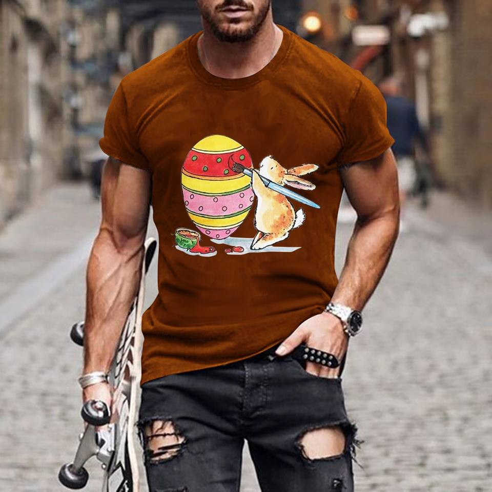 T-shirt à manches courtes pour homme, col rond, imprimé numérique, coupe ample, 100% coton, respirant, tricoté, vêtements décontractés d'été