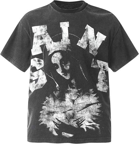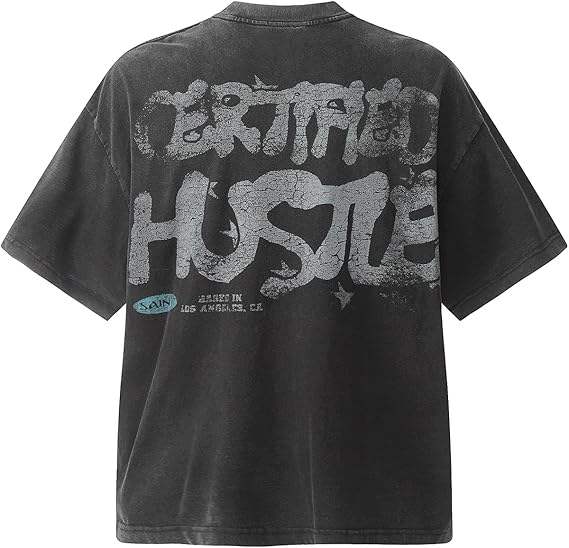 T-shirt d'été pour homme à col rond, tricoté, délavé, coupe oversize, style hip-hop, avec impression intégrale de lettres, 100% coton, manches courtes