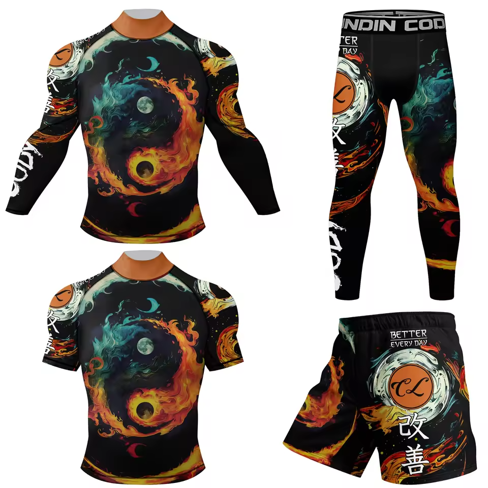 Ensemble de sport pour hommes en caoutchouc anti-irritation : short de MMA, de kick-boxing et de Muay Thai, et ensemble de jogging (chemise et pantalon)