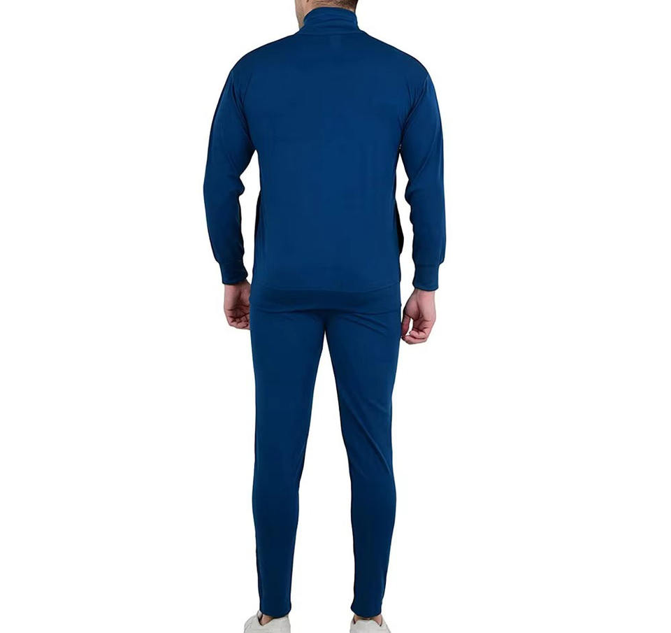 Survêtement d'entraînement Sapphire Core pour homme - Veste à col montant entièrement zippée bleu foncé uni et pantalon de jogging athlétique ajusté assorti