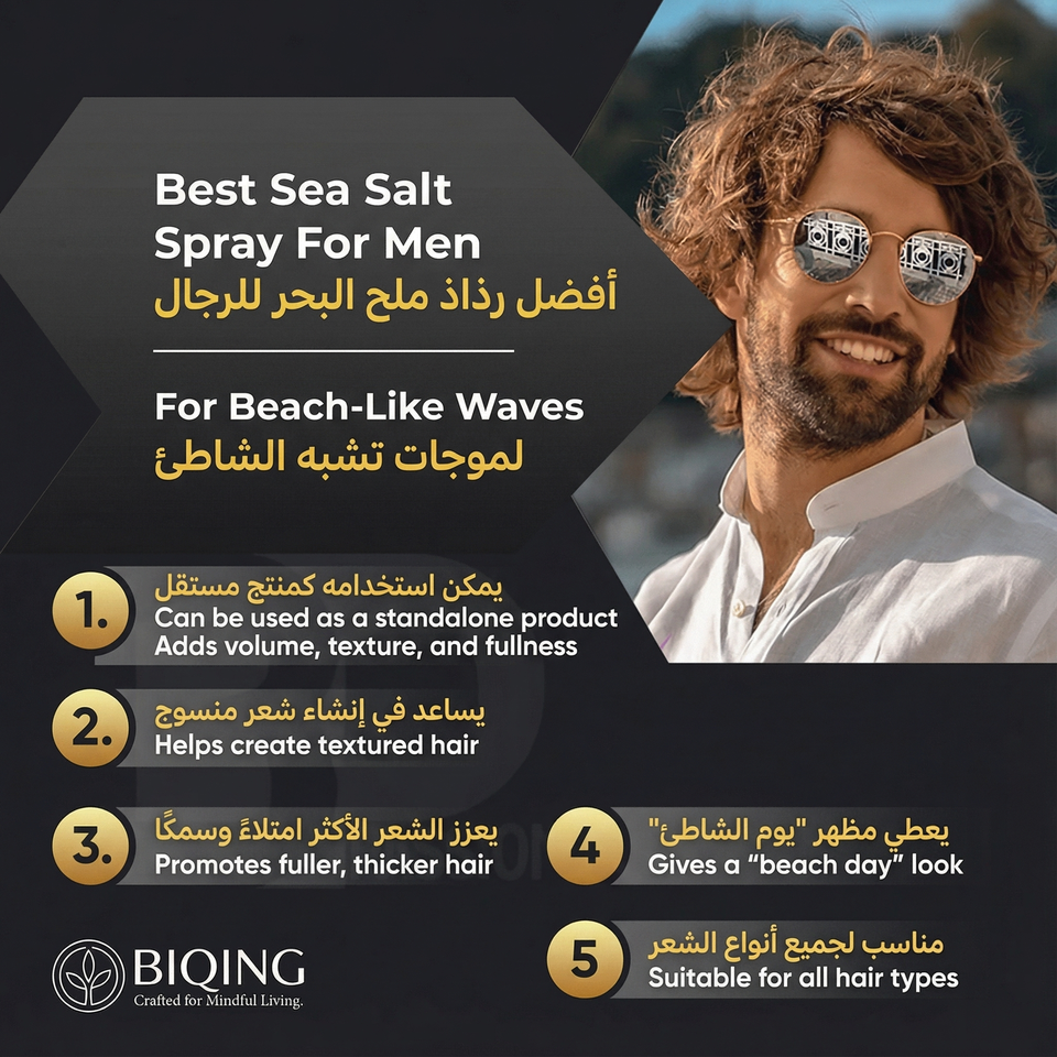 Spray texturisant pour cheveux à l'eau de mer pour hommes, volumisant, effet vague océanique naturel, produit coiffant, finition forte tenue, protection contre la chaleur, cheveux secs