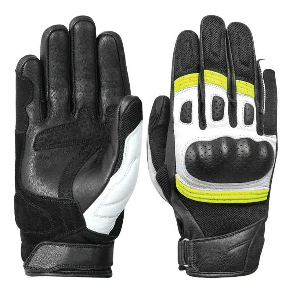 Gants de moto d'été à manchette courte pour hommes, noir, rouge, blanc, vêtements de course automobile, gants en cuir véritable pour hommes