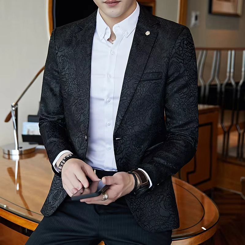 Blazer pour homme à simple boutonnage, broderie 3D, imprimé tendance, bleu royal, noir, personnalité, jacquard rose, veste slim, décontractée pour le travail