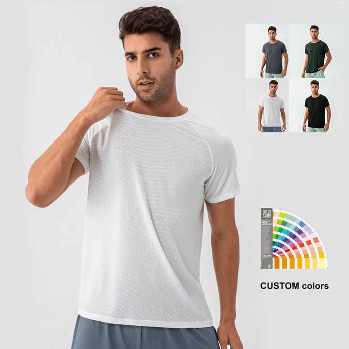 T-shirts pour hommes, à manches courtes, col rond, respirants et à séchage rapide, adaptés aux exercices et à la remise en forme