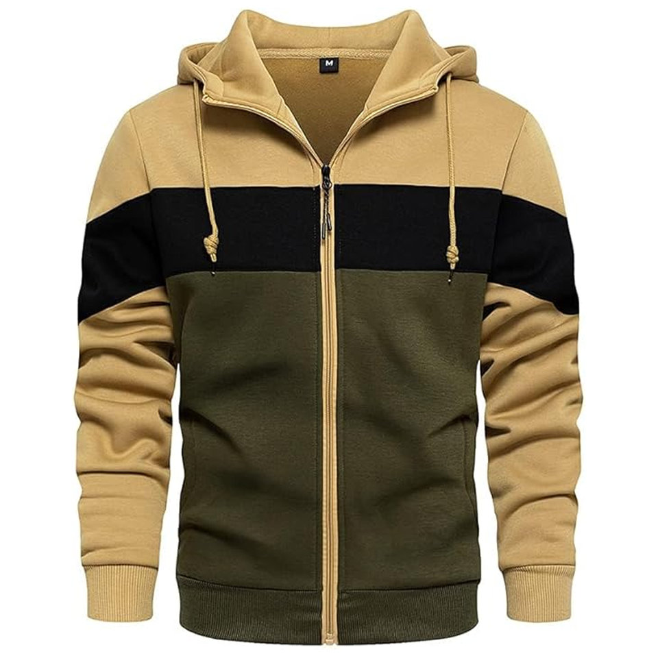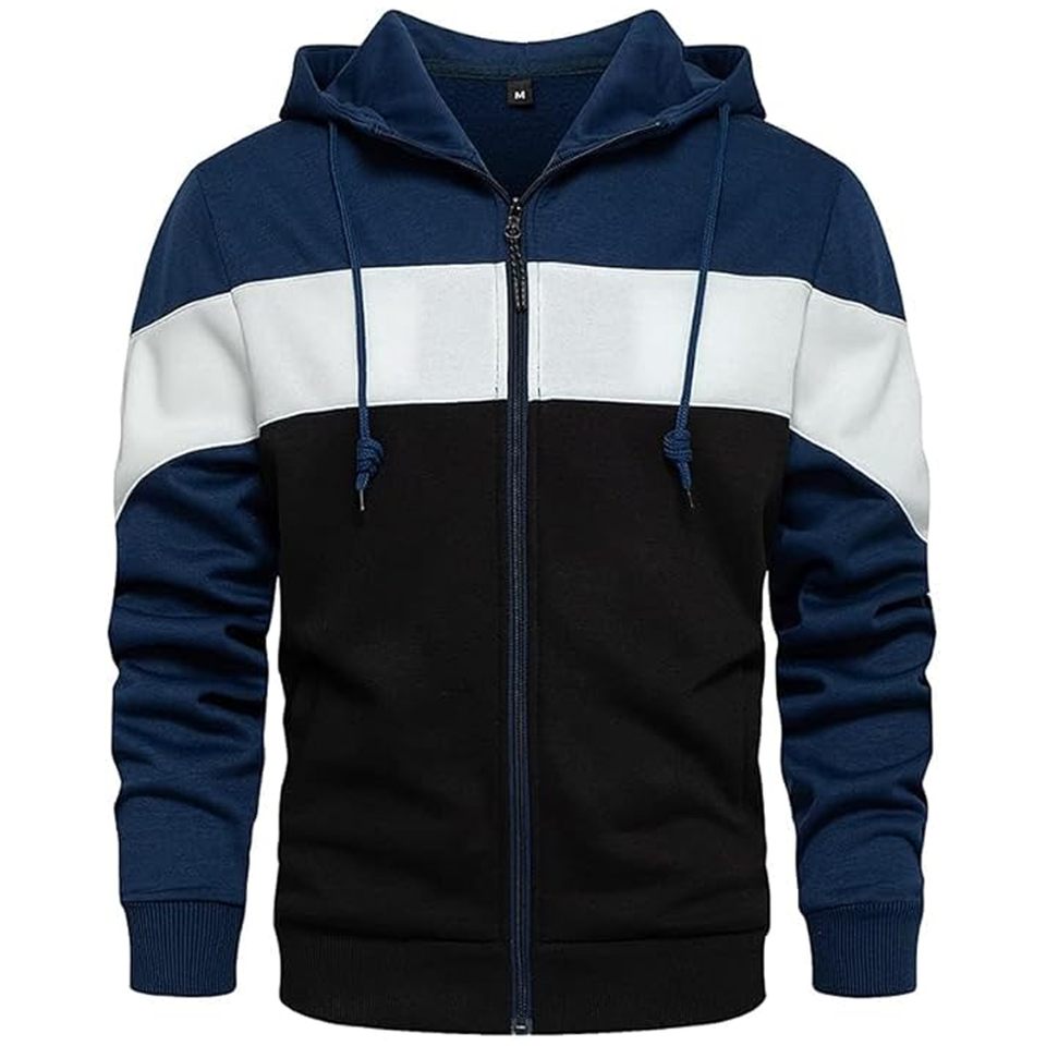 Sweat-shirt coupe ajustée pour hommes automne couleur bloc 100% Polyester poche kangourou à capuche manches longues fermeture éclair impression numérique polaire