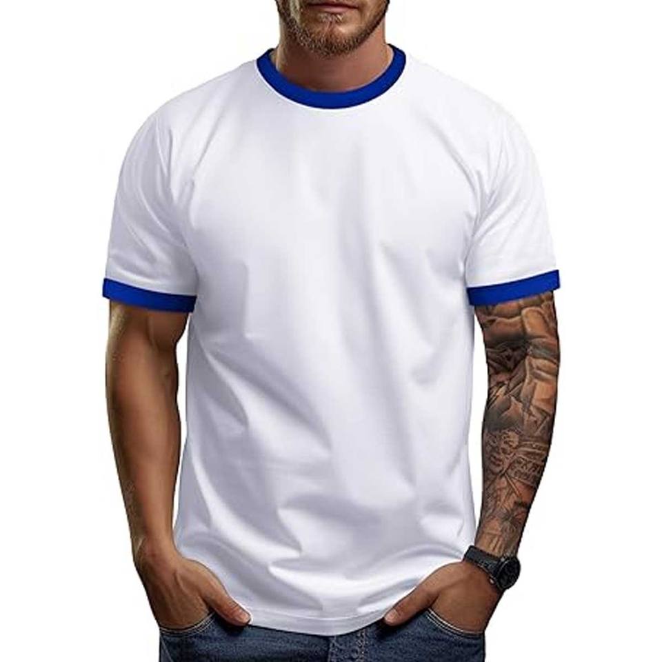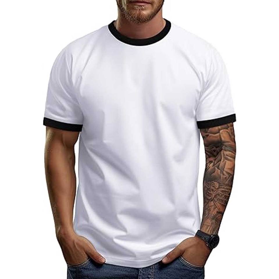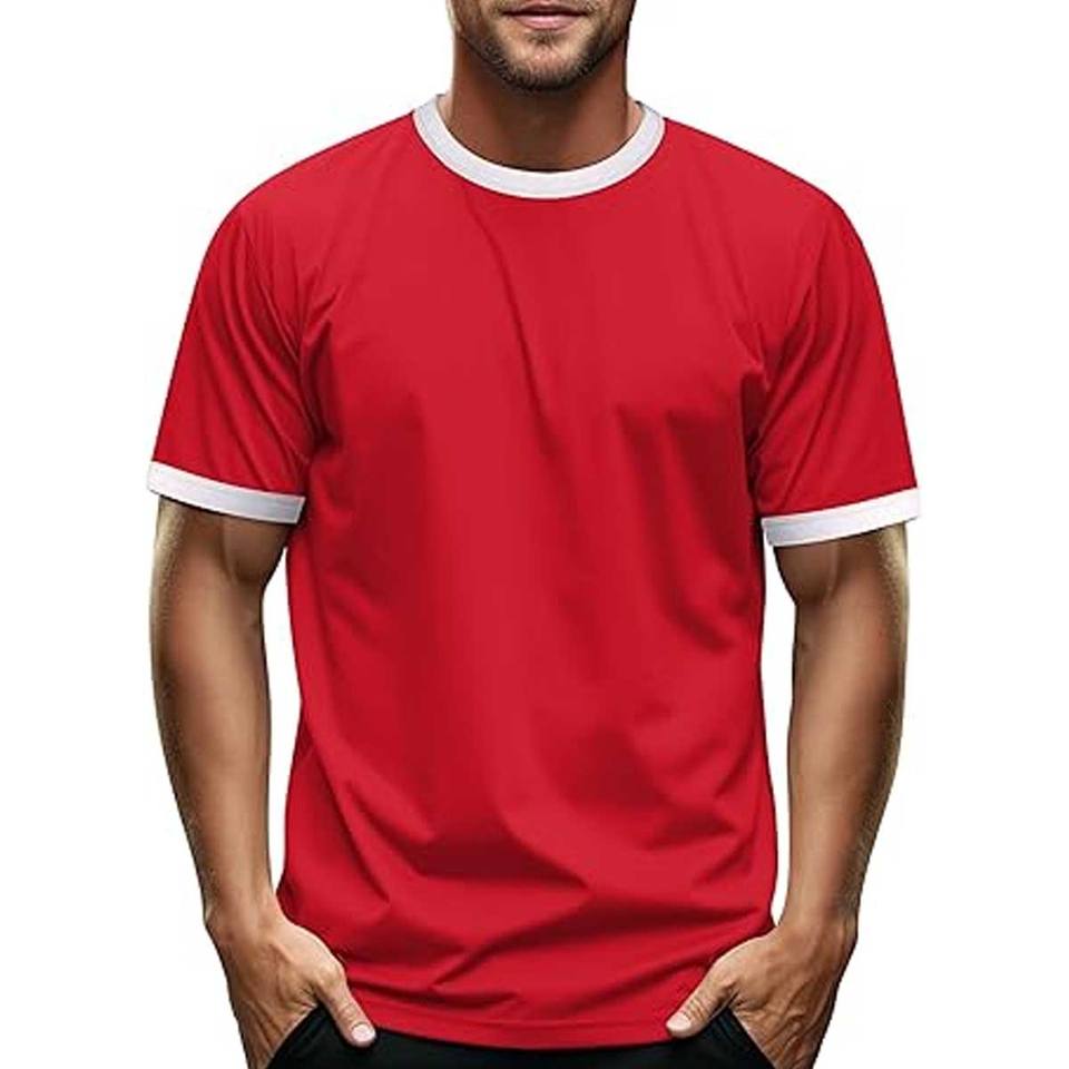 T-shirt de sport à manches courtes et col rond pour homme, coupe ajustée, 100% coton