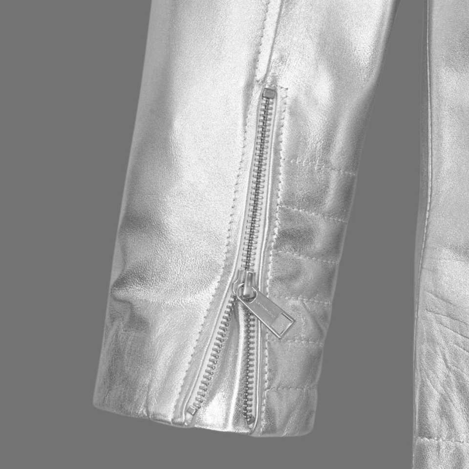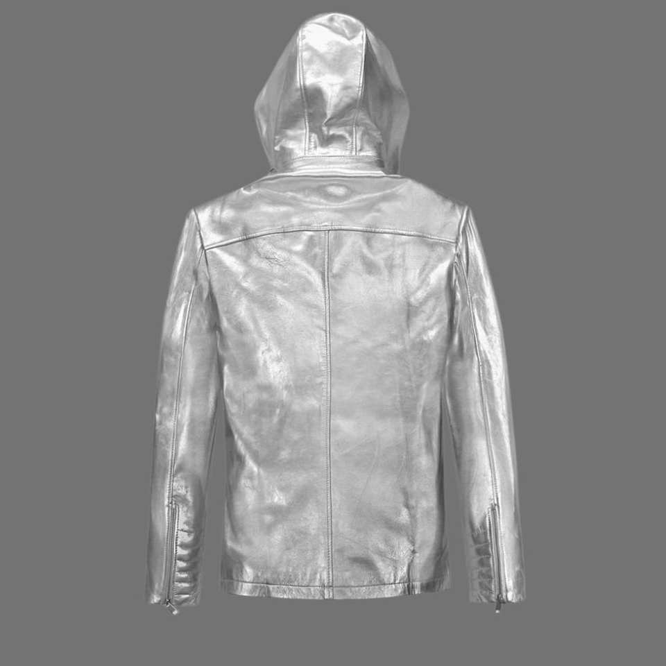 Men's Slim Fit Metallic Silver Real Leather Jacket Biker Style Motorcycle Jacket Stand Collar Hood Classic Fashion for Winter