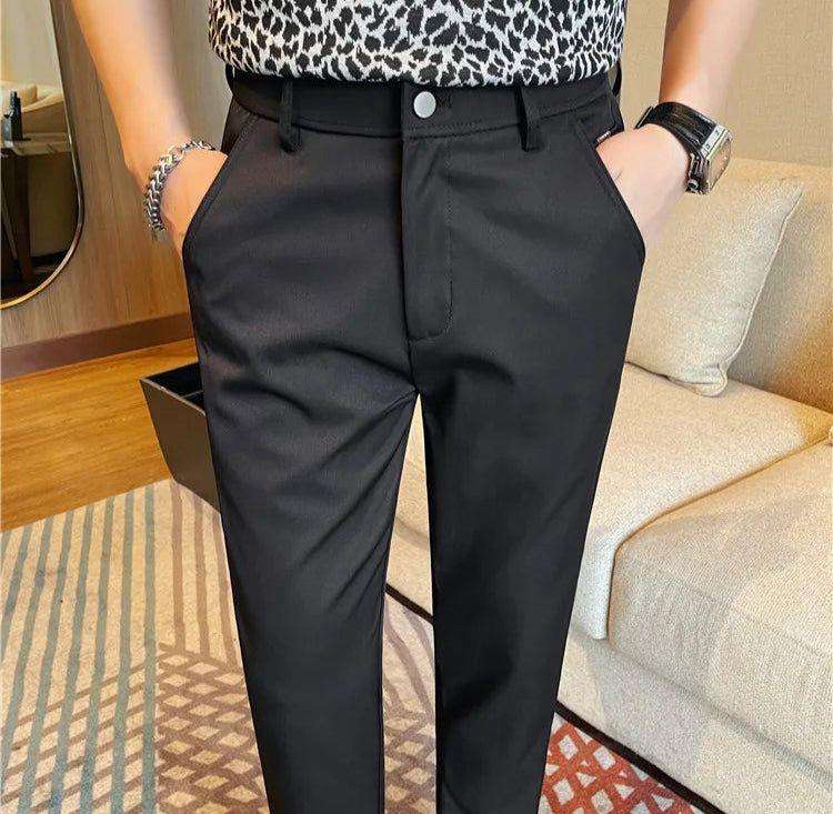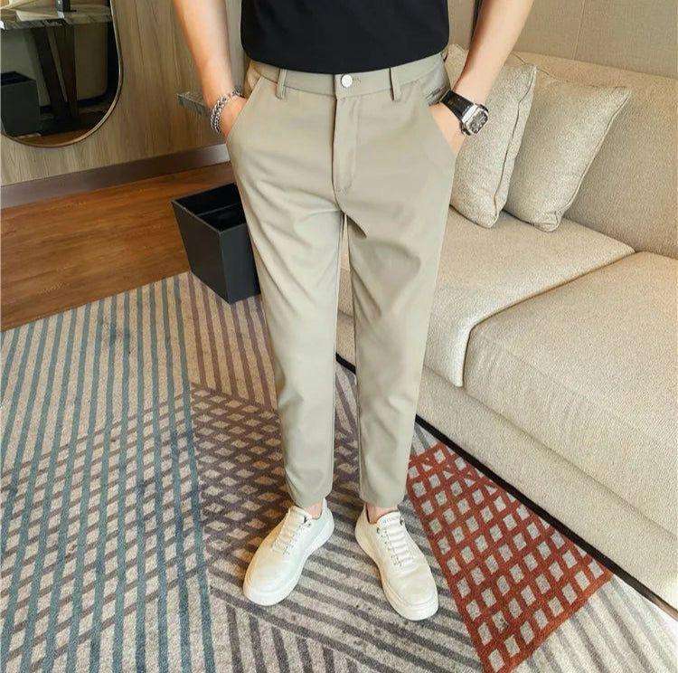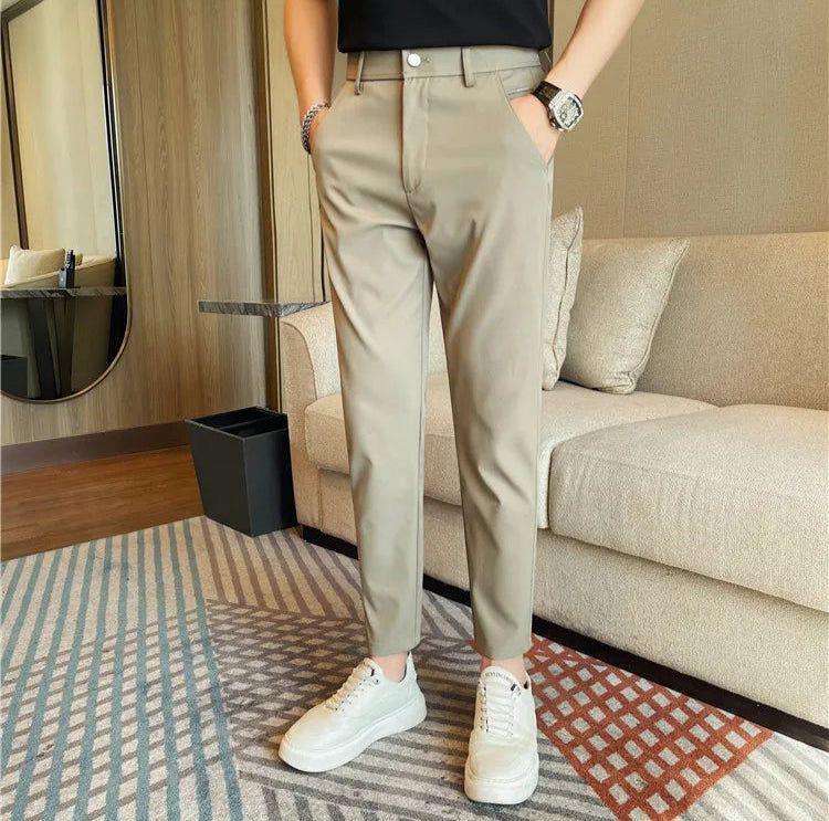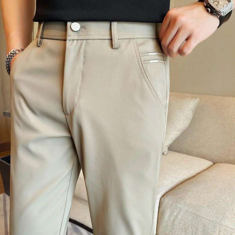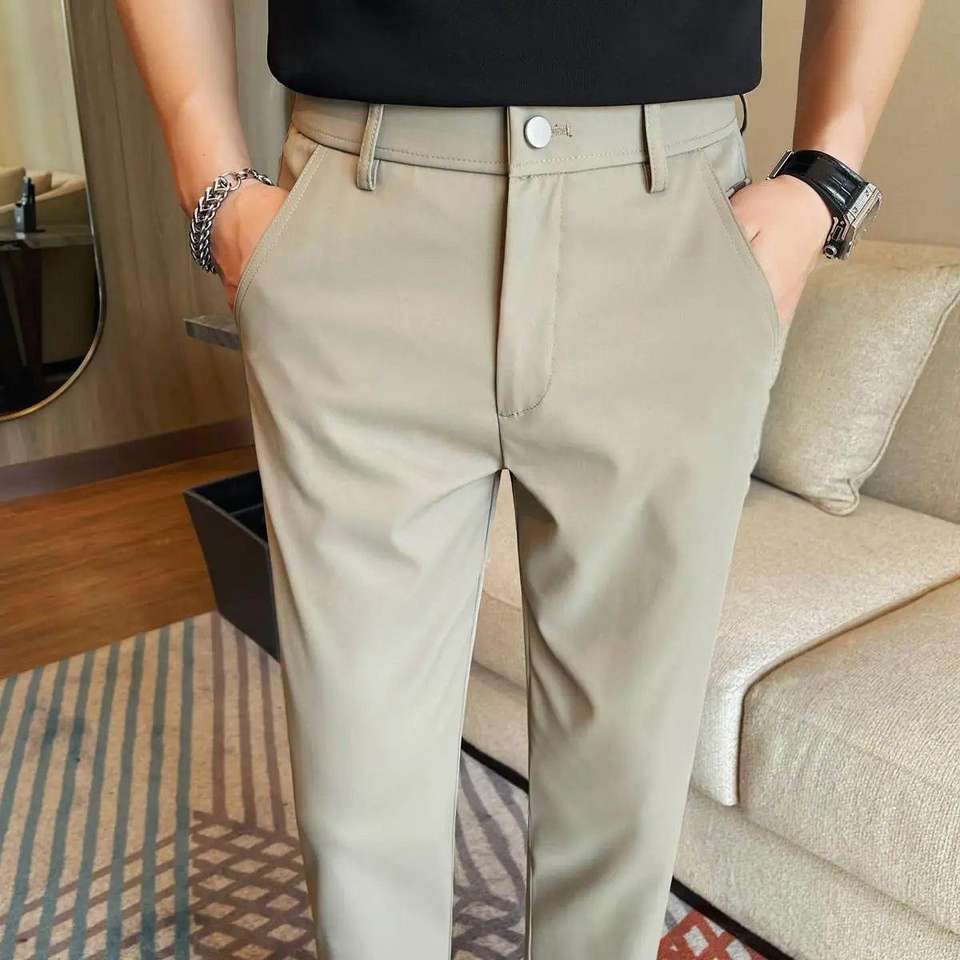 Pantalon de bureau à coupe étroite pour hommes, pantalon Chino extensible de haute qualité, tenue de cérémonie décontractée, pantalon droit à l'avant plat, grande taille