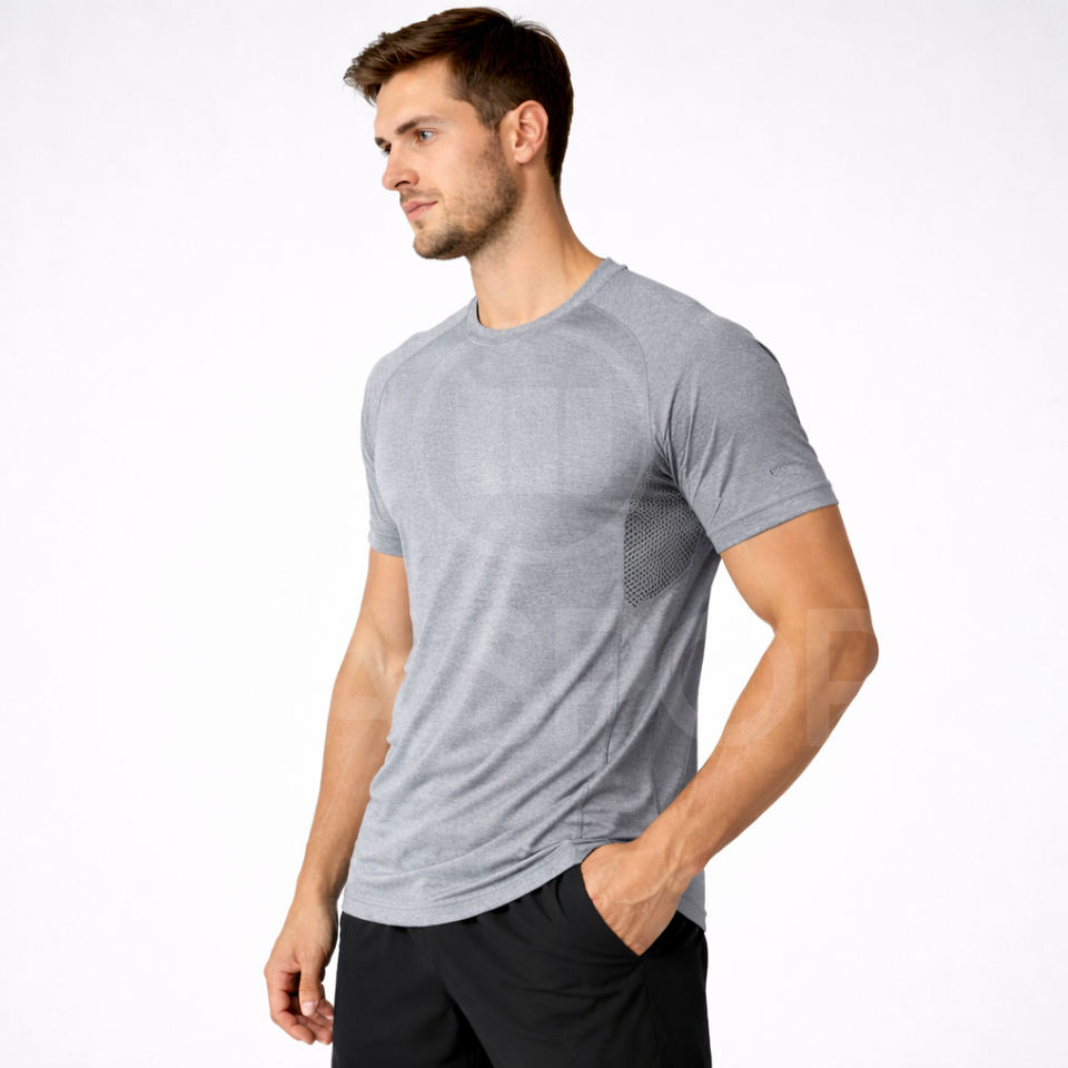 T-shirt de sport pour homme, coupe ajustée, léger, respirant, séchage rapide, haut d'entraînement athlétique, personnalisable OEM, vêtements de sport vierges