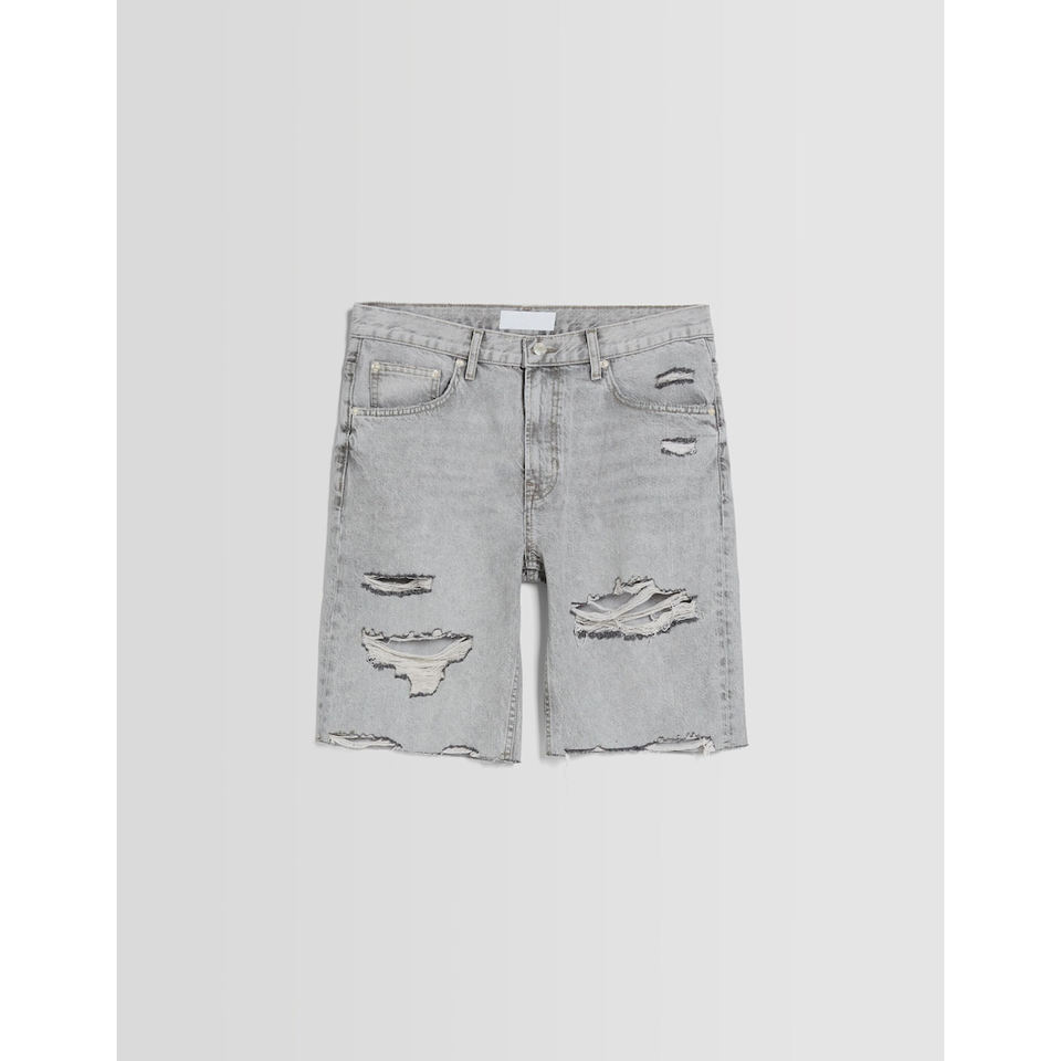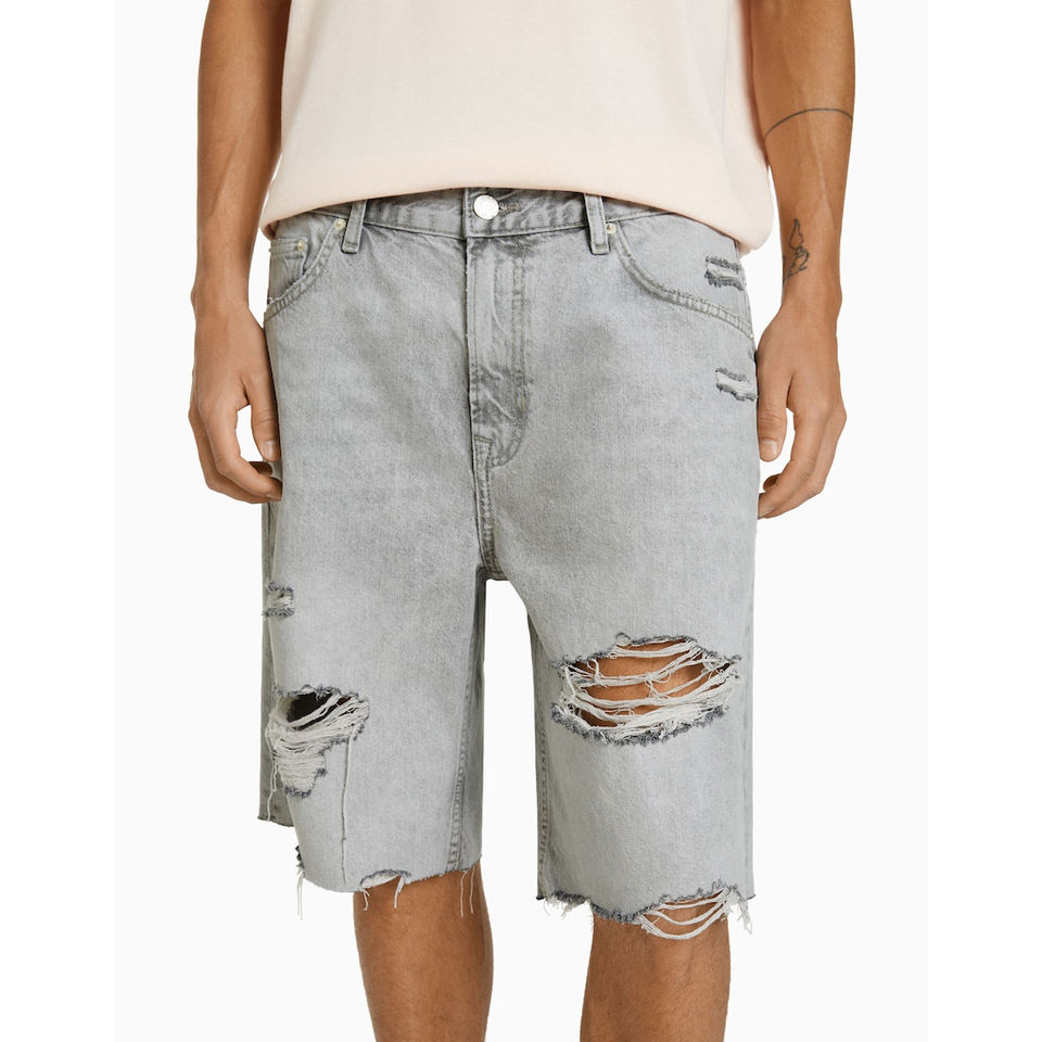 Bermuda déchiré en denim pour hommes, pantalon gris respirant avec fond brut, conception baggy, motif solide, service OEM disponible