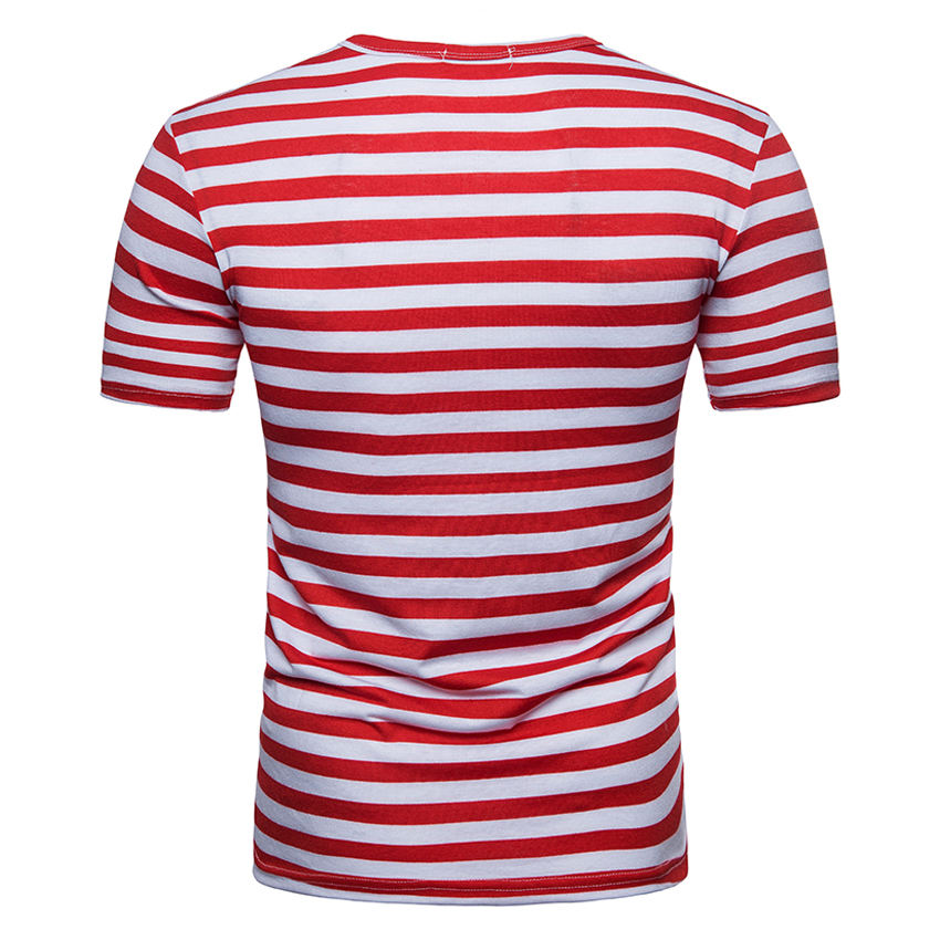 T-shirt à rayures coupe ajustée pour homme, col rond, style Hip Hop, logo personnalisé 100% coton, haut tendance à manches courtes, vêtements décontractés