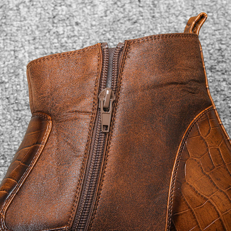 Men's Snake Skin Pattern Ankle Boot with Tassel Flat Heel and Closed Toe Anti-Slippery Feature