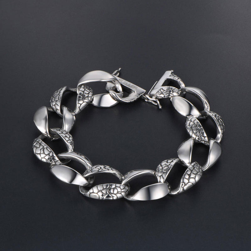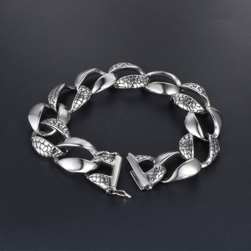 Bracelet pour homme à motif peau de serpent, bijoux en argent tibétain, style rock hip hop, CE294