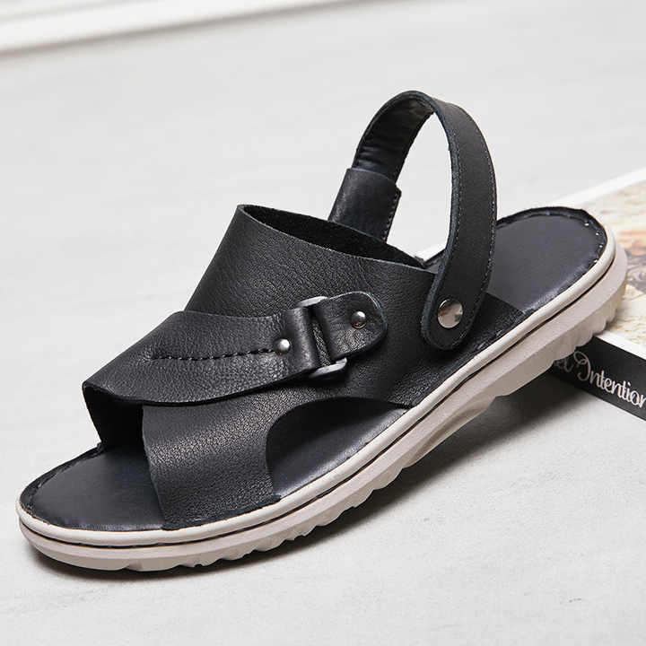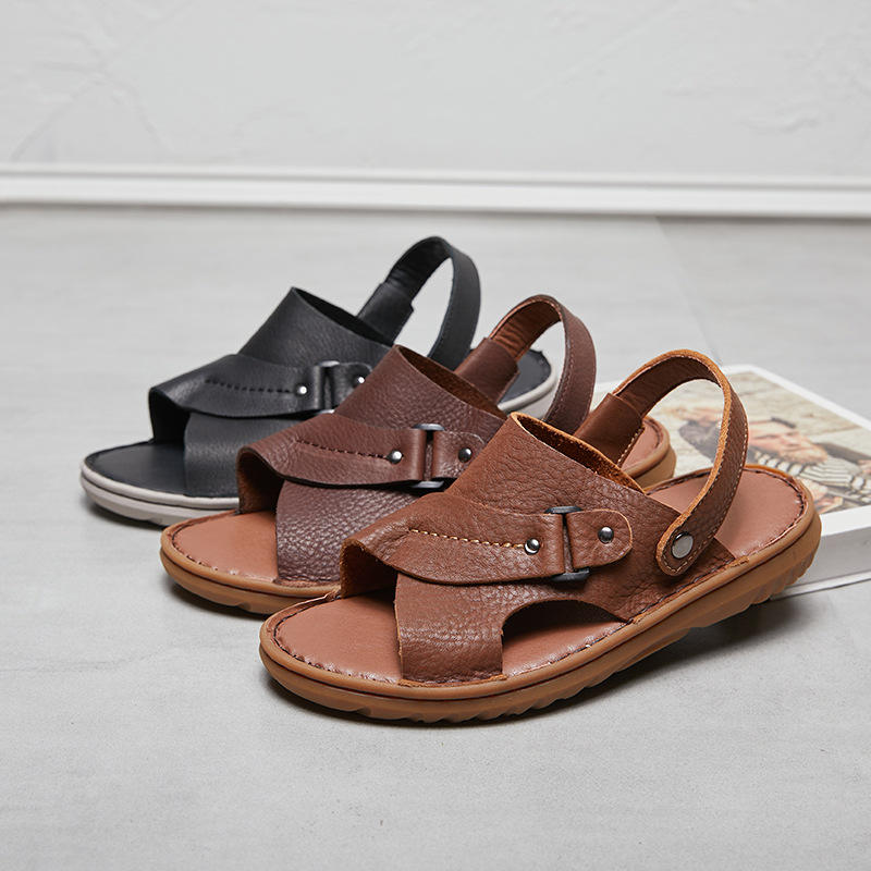 Sandales Homme en Cuir de Vachette Souple Cousues Main – Collection Été 2026 – Confortables 2-en-1 à Bout Ouvert, Résistantes à l'Usure et Antidérapantes