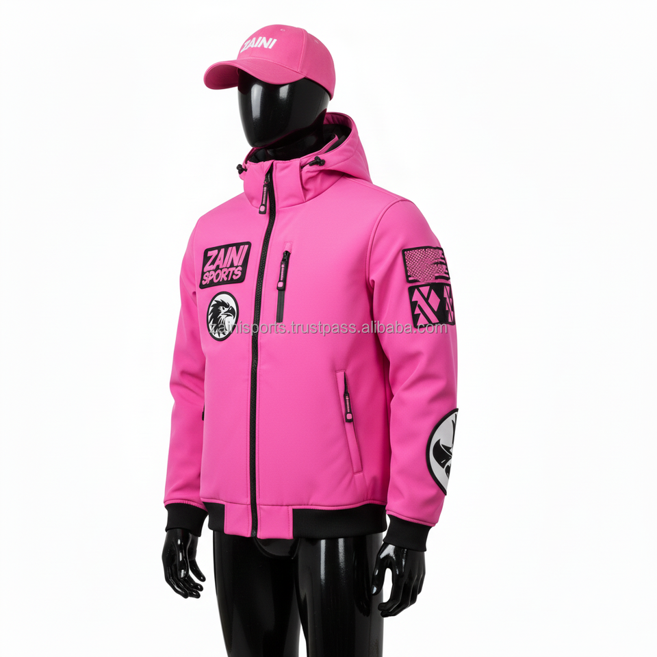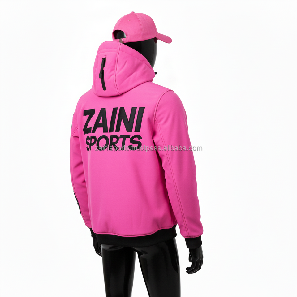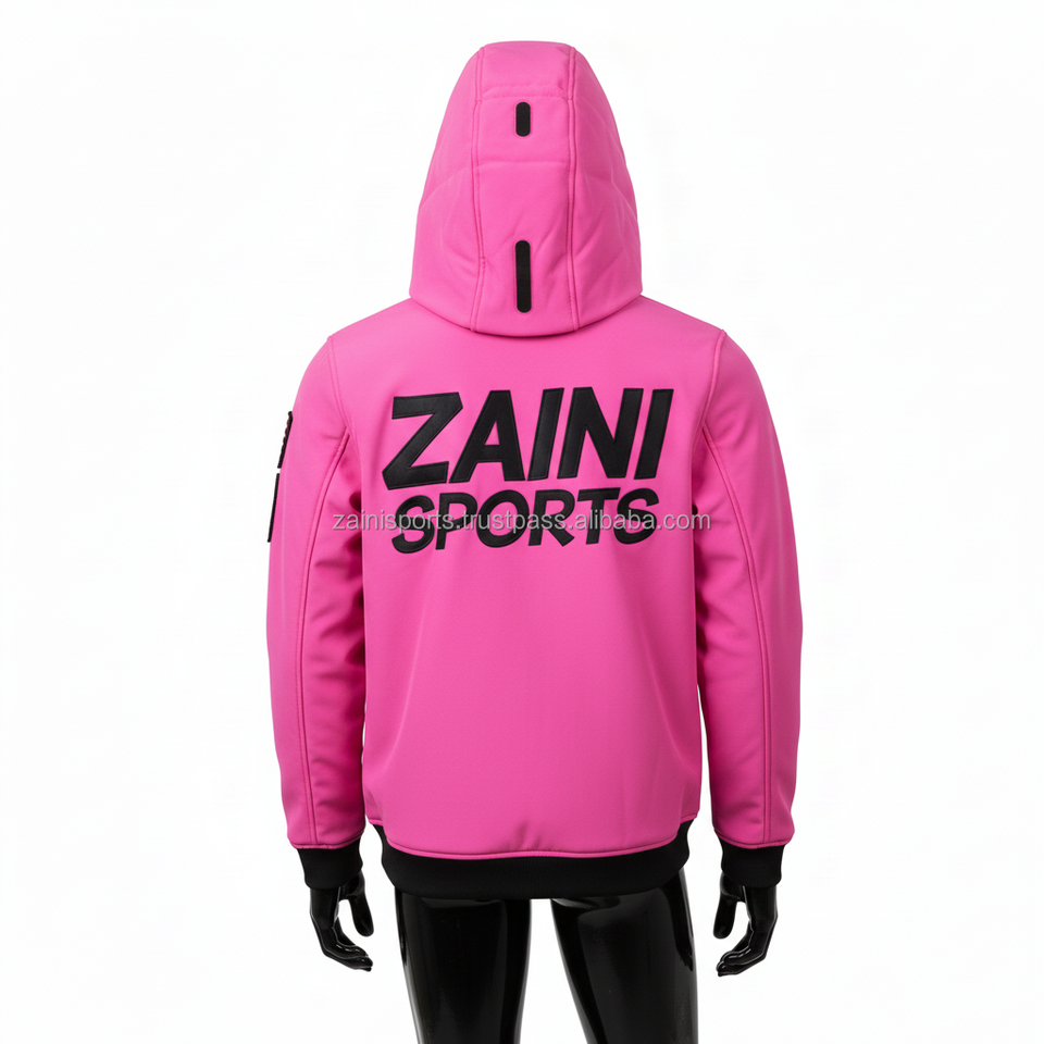 Veste Softshell pour homme Tissu polaire premium collé Solide rose Vêtement d'extérieur d'hiver Logo par transfert thermique Veste softshell pour homme