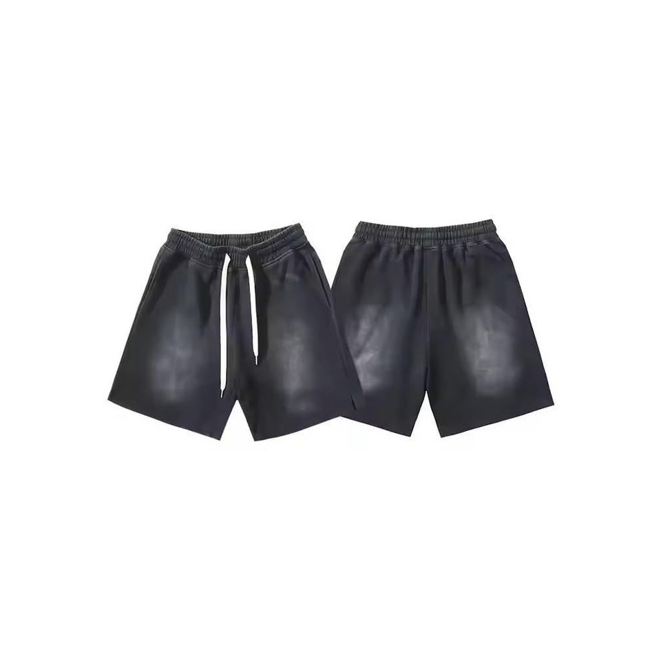 Shorts de sport pour homme en molleton French Terry uni, délavé à l'acide, écologique, anti-UV, avec bords bruts délavés au soleil et finition cirée à la pierre