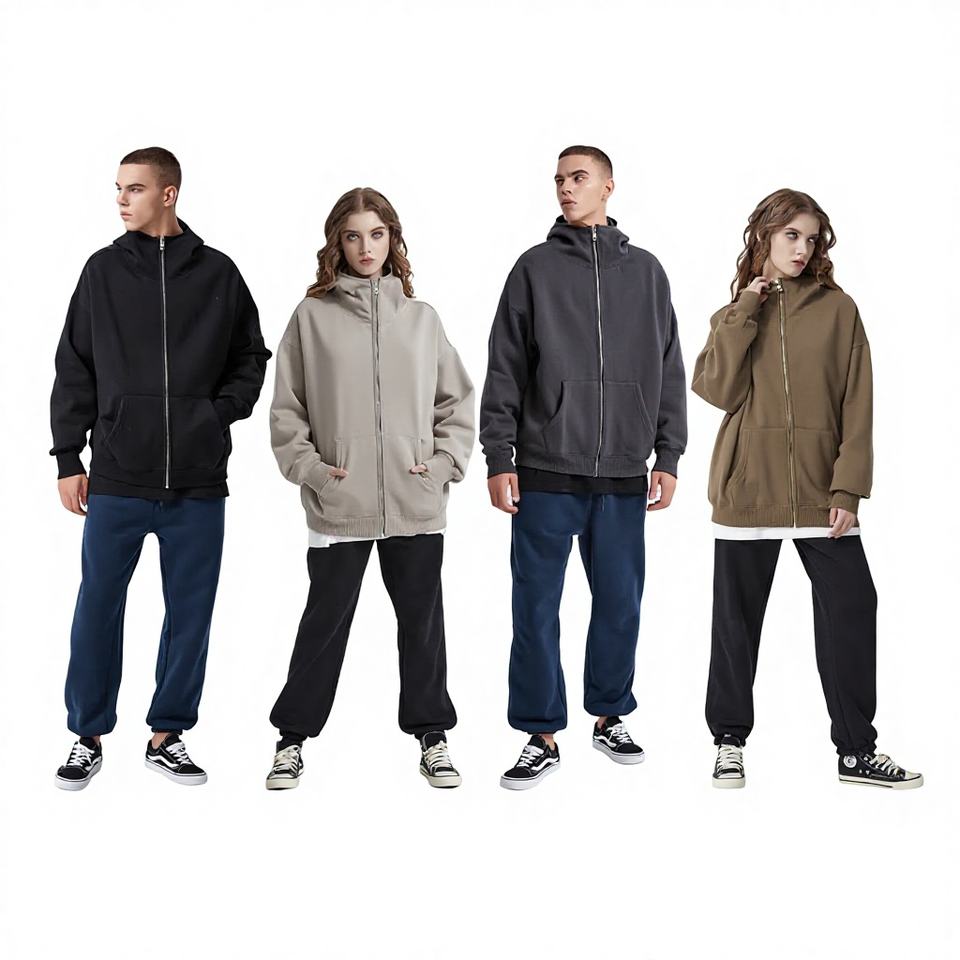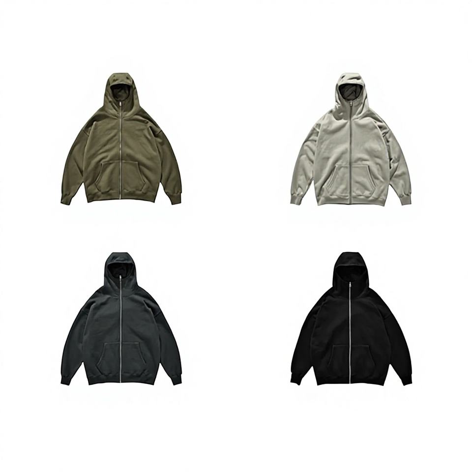 Sweat-shirt à capuche pour homme en coton uni, doublé polaire 350G, avec fermeture éclair et poignets côtelés, idéal pour l'automne (ODM)