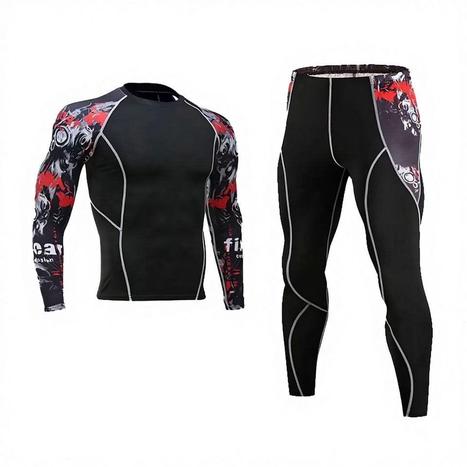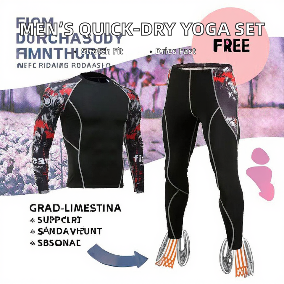 Ensemble de sport 2 pièces pour homme, extensible dans quatre directions, respirant, à séchage rapide, manches longues, pour le yoga et l'entraînement