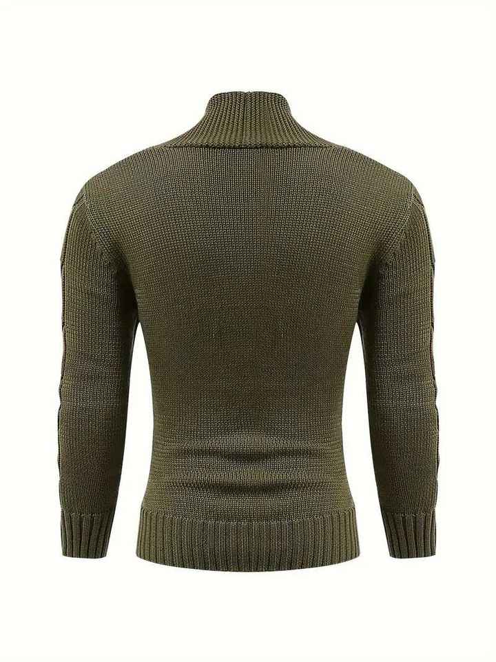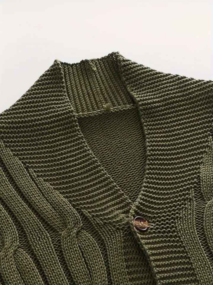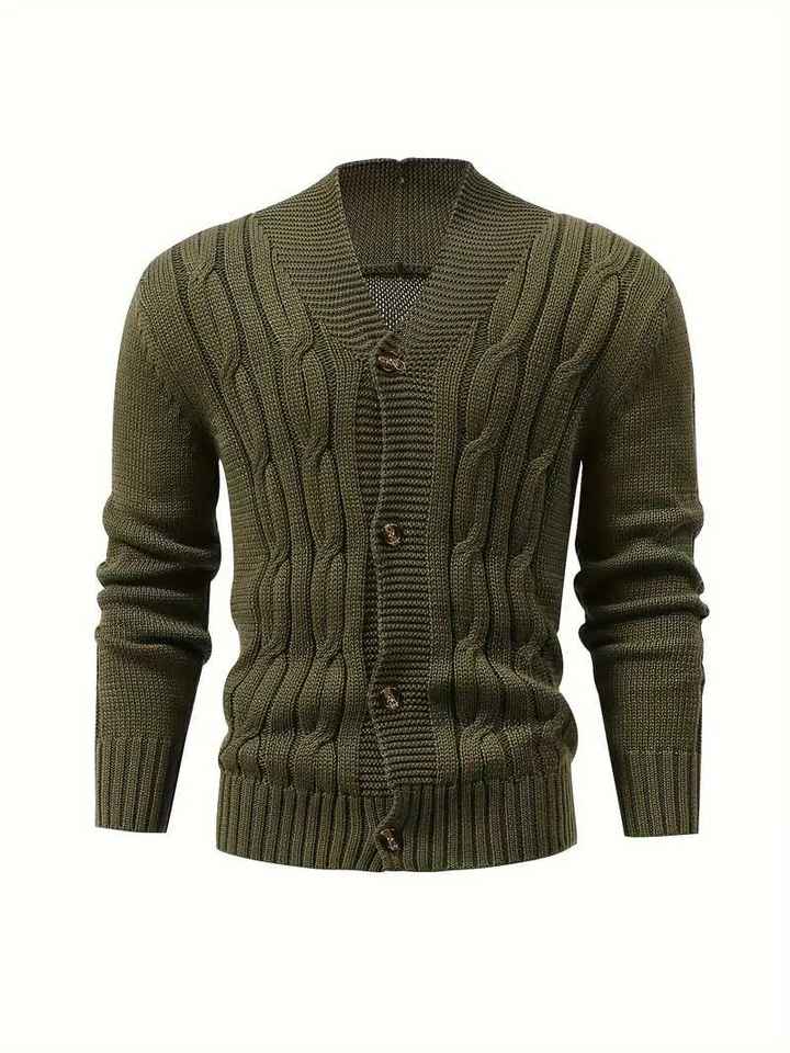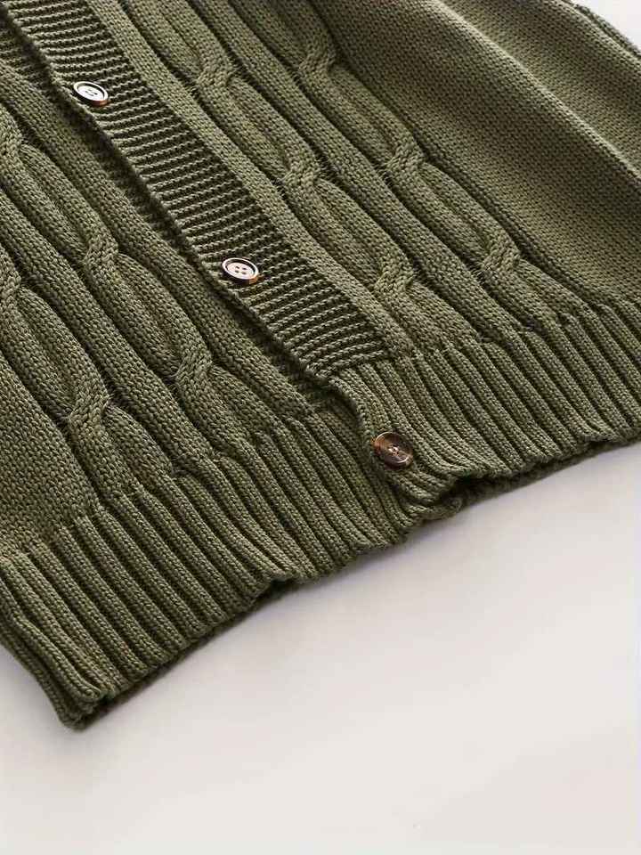 Men's Solid Rib Knit Button-Up Cardigan Sweater V-Neck Cable Knit Slim Fit Warm Fall Winter Casual Knitted Jacket Men's Knitwear