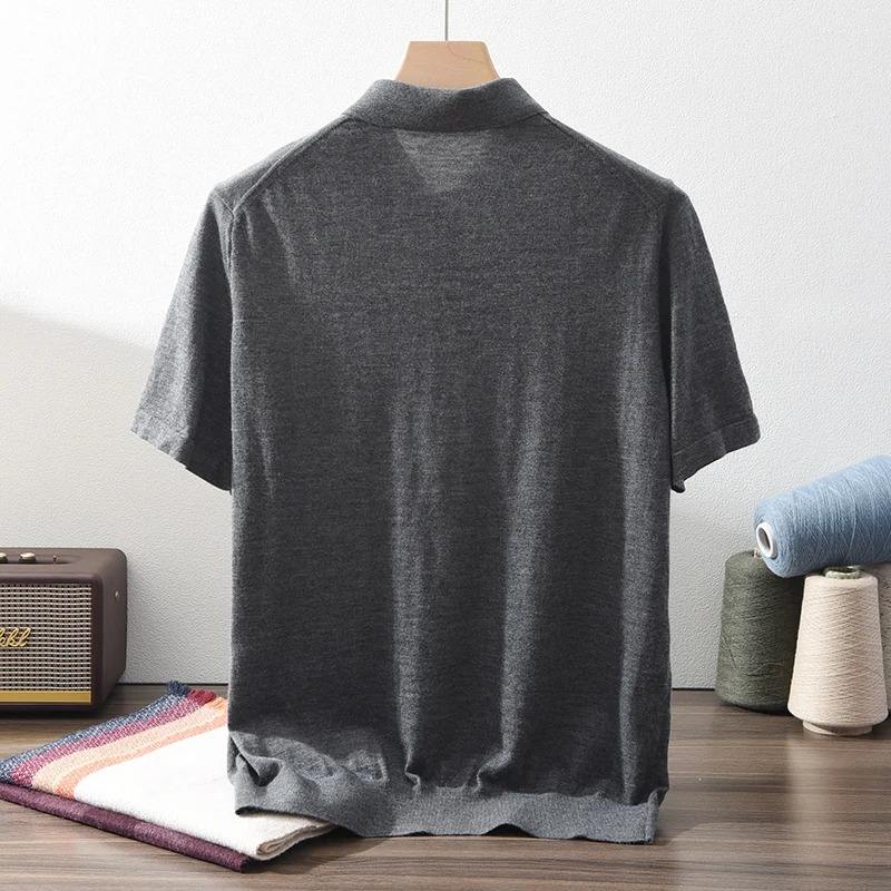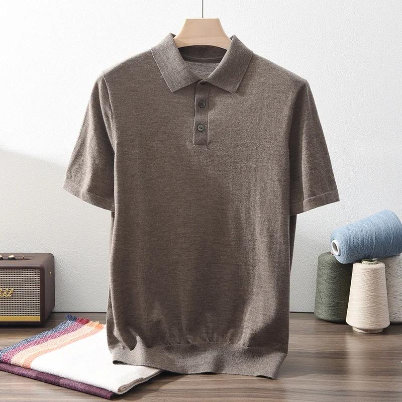 Polo pour homme uni à manches courtes, style formel, col rabattu, couleur contrastante, grande taille, infroissable, en tissu tissé brodé