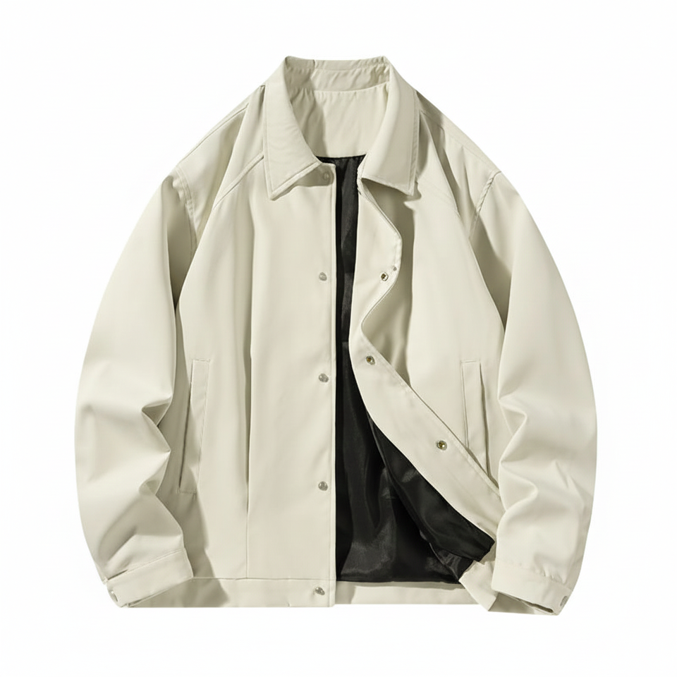 Blouson aviateur pour homme, uni, simple, tendance, col rabattu, vêtement d'extérieur, tissage non tissé enduit, décontracté de bureau, saison d'automne, 100%