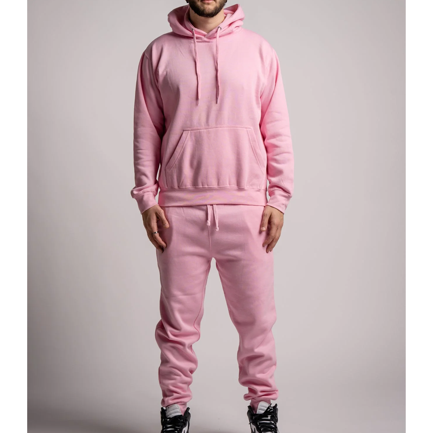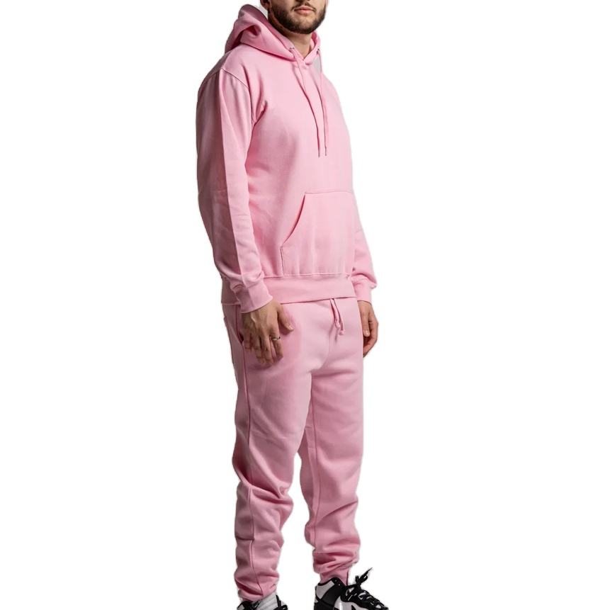 Ensemble de vêtements de sport pour homme, taille plus, deux pièces, écologique, 100% coton, léger, respirant, motif uni, sweat à capuche