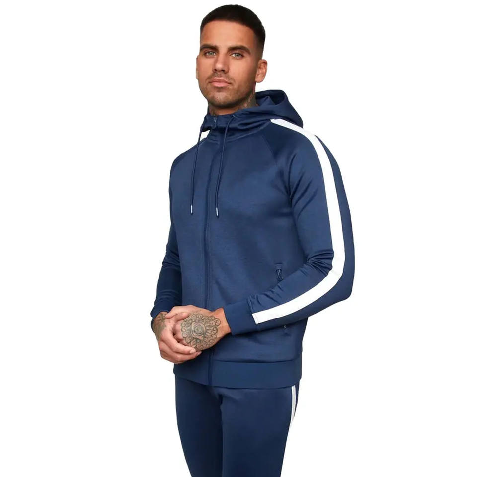 Ensemble de survêtements pour hommes personnalisé, respirant, avec sweat à capuche zippé, imprimé couleur personnalisée, pour activités de plein air, vente en gros