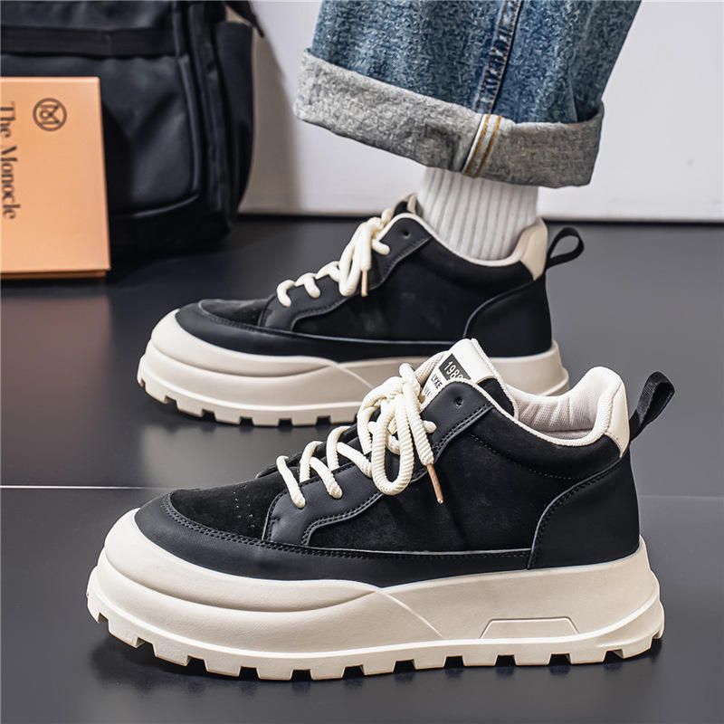 Chaussures décontractées sportives montantes pour hommes, printemps/automne/été, semelle épaisse, respirantes, tendance, à lacets, rehaussantes