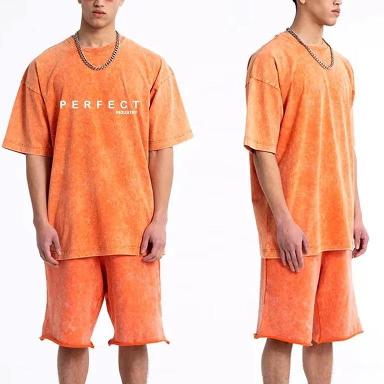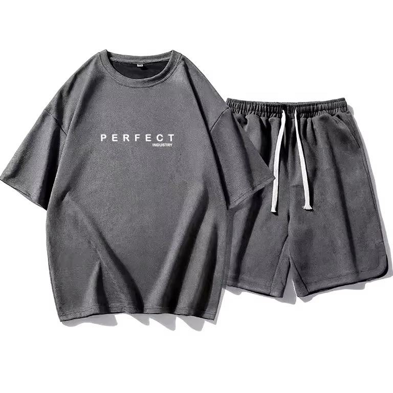 Ensemble de costume pour homme en coton 100% avec logo personnalisé brodé, t-shirt imprimé et short