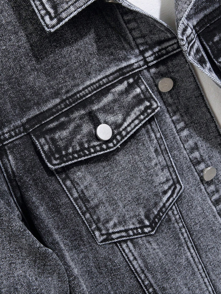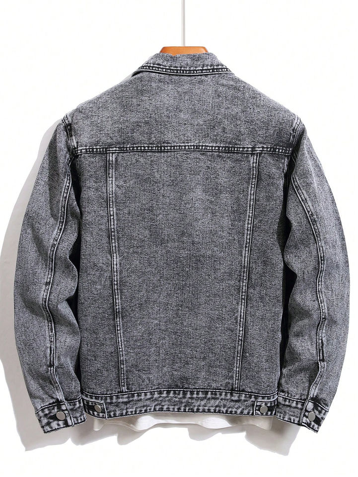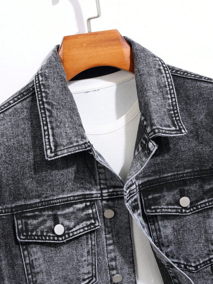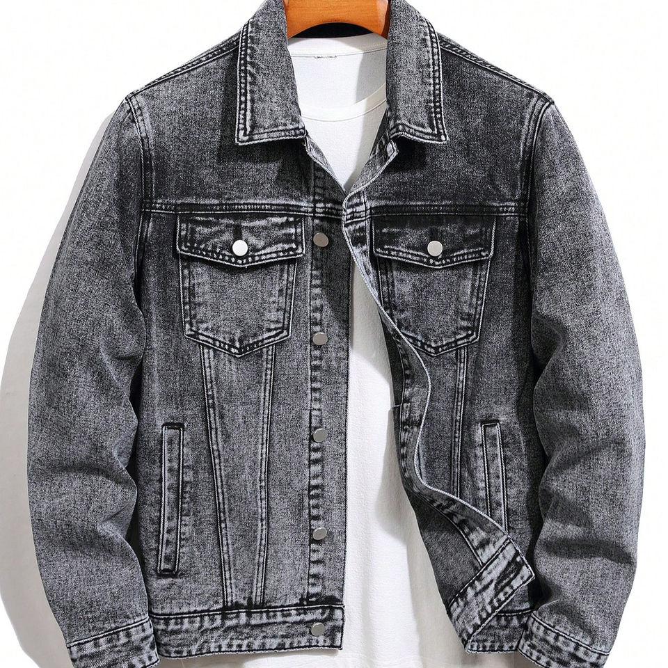 Veste en jean XL tendance de printemps pour hommes avec grande poche vêtements de travail en toile de couleur unie belle veste décontractée teinte unie pour hommes