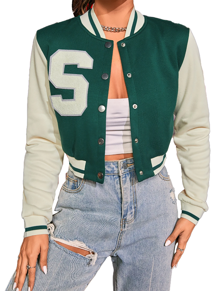 Colorblock rétro de Chicago pour hommes, blouson d'aviateur emblématique, col montant en toile, logo à l'avant, mode vintage