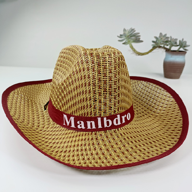 Chapeau de cow-boy de protection solaire pour hommes de printemps et d'été avec logo personnalisable Chapeau de canotier en paille de voyage pour la pêche à usage quotidien