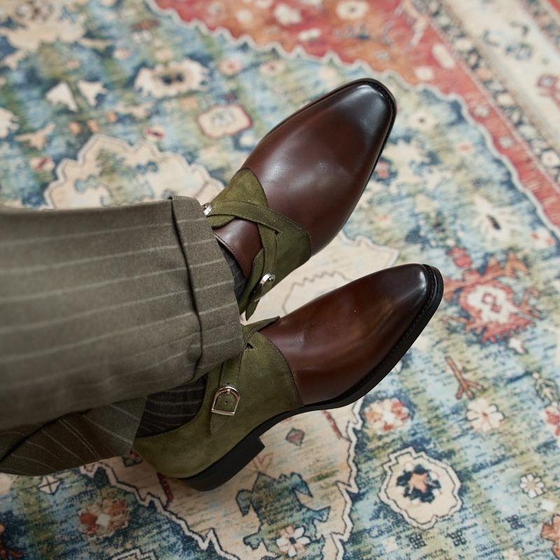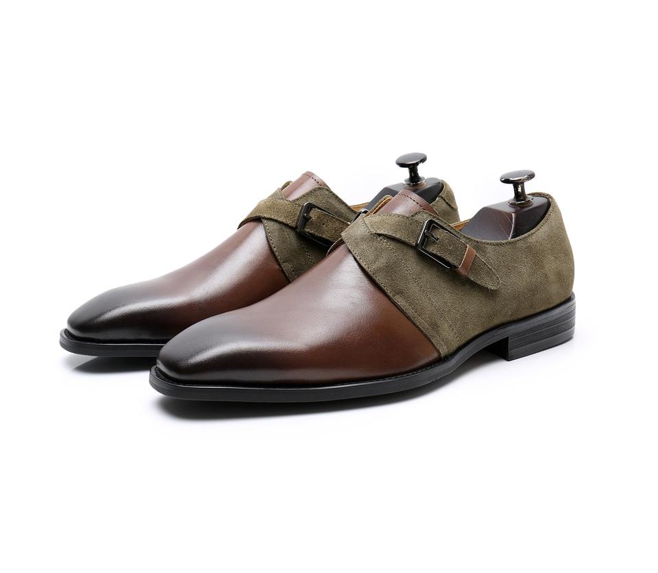 Chaussures Richelieu carrées pour hommes, formelles, à lacets, avec mors de cheval, antidérapantes, respirantes, légères, en patchwork de caoutchouc