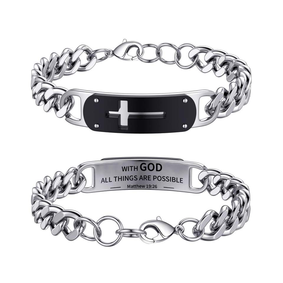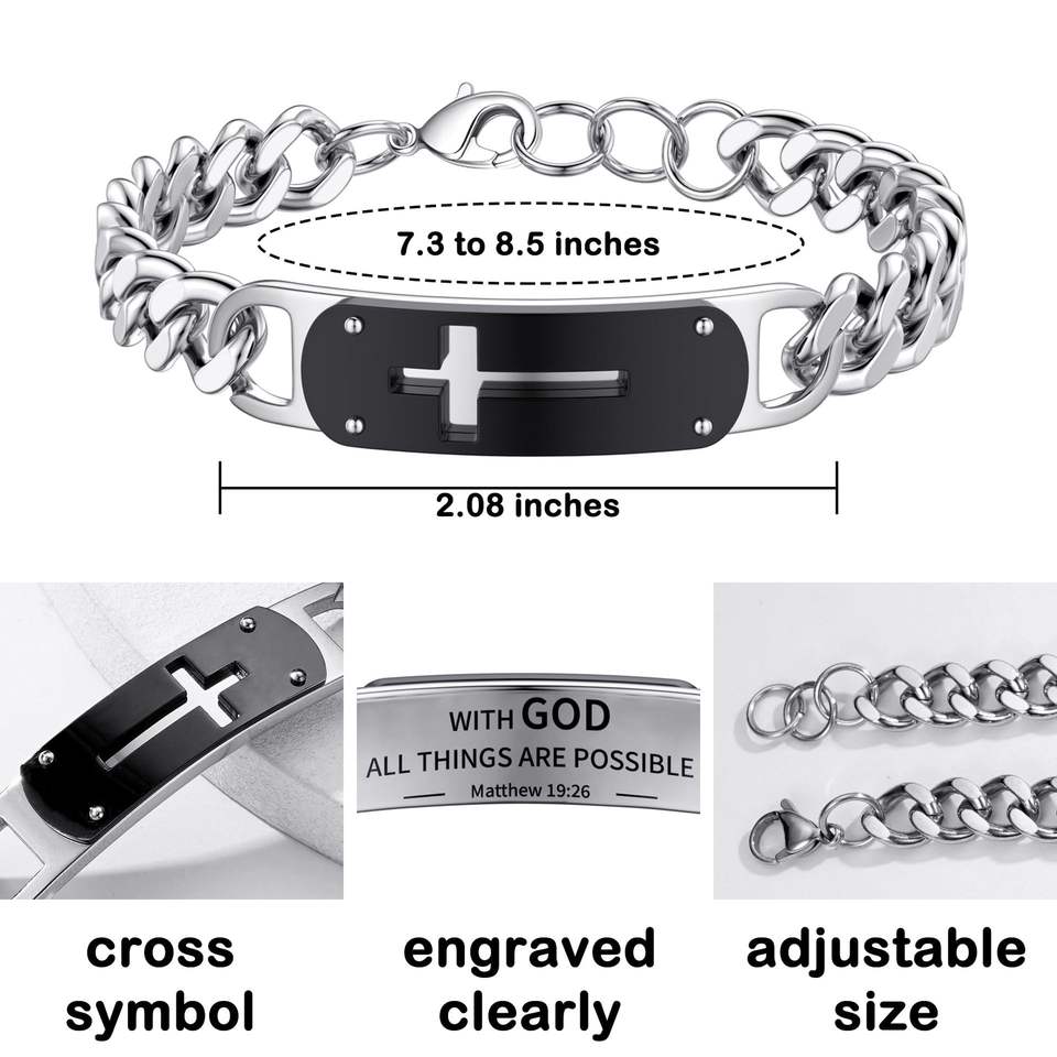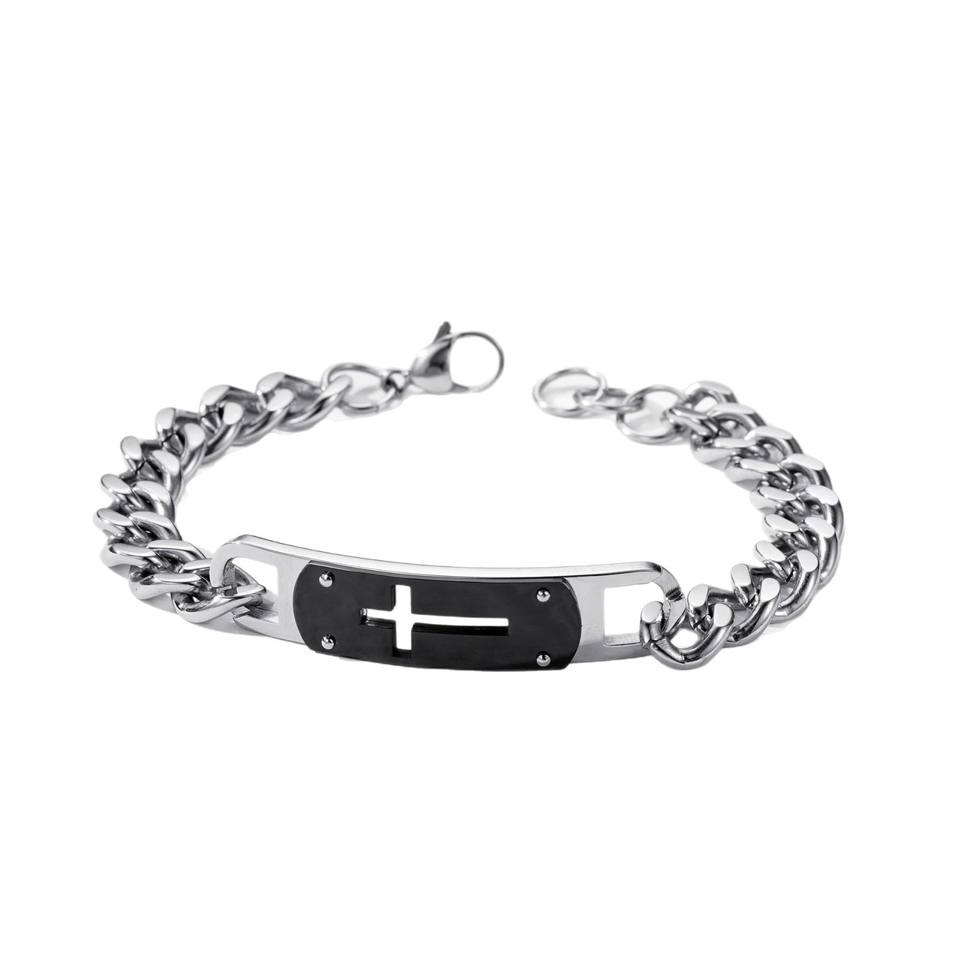 Bracelet pour homme en acier inoxydable avec chaîne ajustable, croix creuse incurvée et pierre naturelle