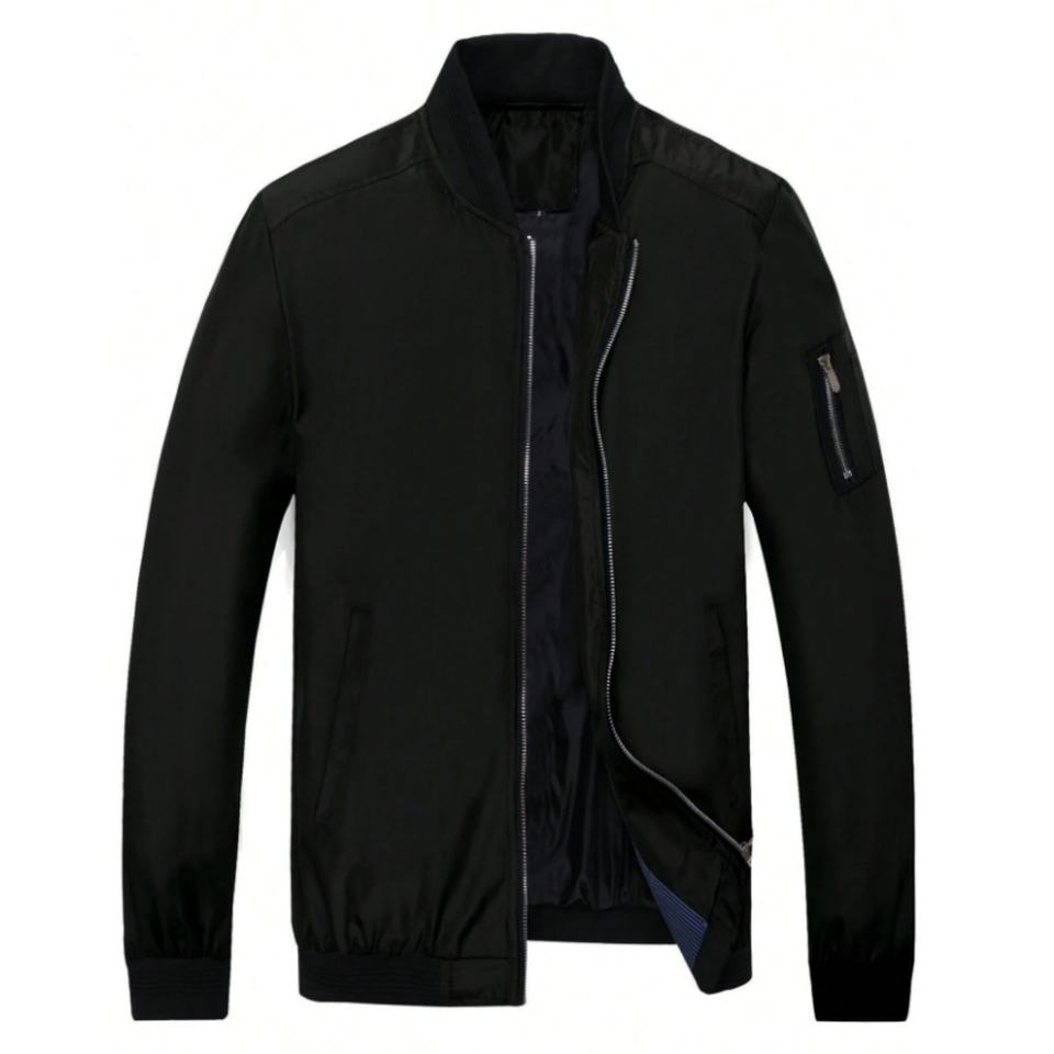 Veste zippée à col montant pour homme, coupe-vent décontracté multi-poches, ajustement confortable extensible pour le printemps, l'automne et le quotidien