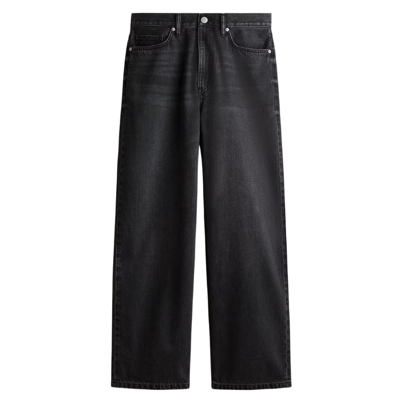 Men's Straight Black Wide-Leg Denim Jeans - Mid Waist Breathable Cotton Spandex Casual Pants for Summer Autumn