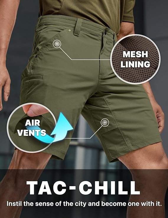 Shorts utilitaires extensibles pour hommes, shorts décontractés légers à séchage rapide, shorts cargo de randonnée et de golf avec poches zippées