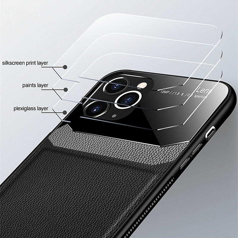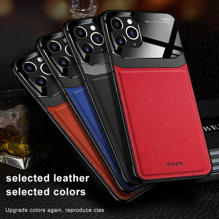 Nom du produit:Cas de téléphone antichoc de modèle de cuir de verre trempé de mode