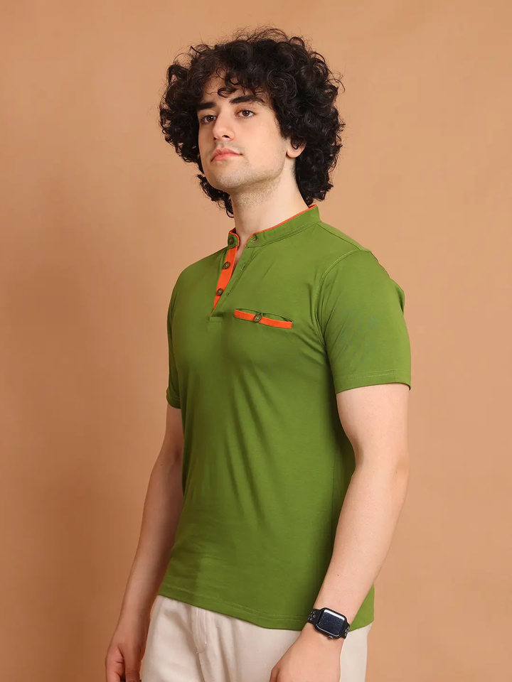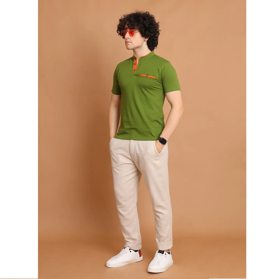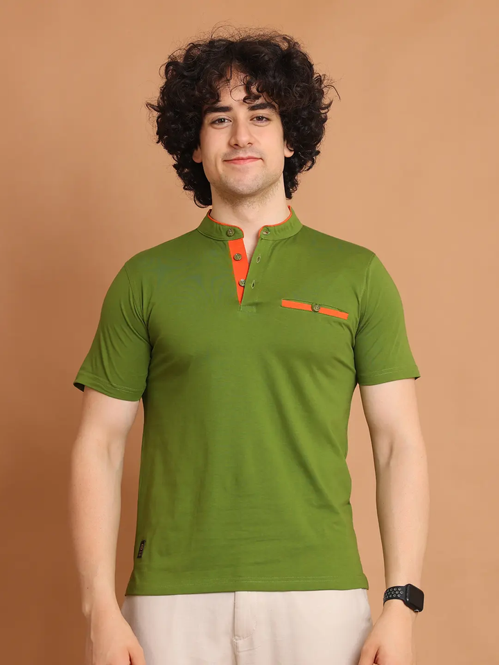 Men's Stylish 100% Cotton Half Sleeve T-Shirt with Mandarin Collar Comfort Casual Wear for Everyday Outfits & Office