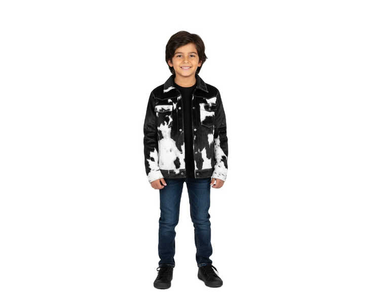 Veste en cuir de vache élégante pour homme avec fourrure véritable Peau de vache unique pour l'équitation en hiver pour l'extérieur