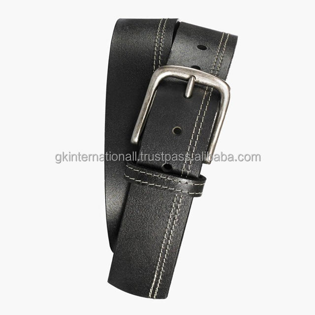 Ceinture décontractée élégante en cuir de vachette pleine fleur, faite à la main, avec double couture fantaisie et boucle en laiton argenté mat