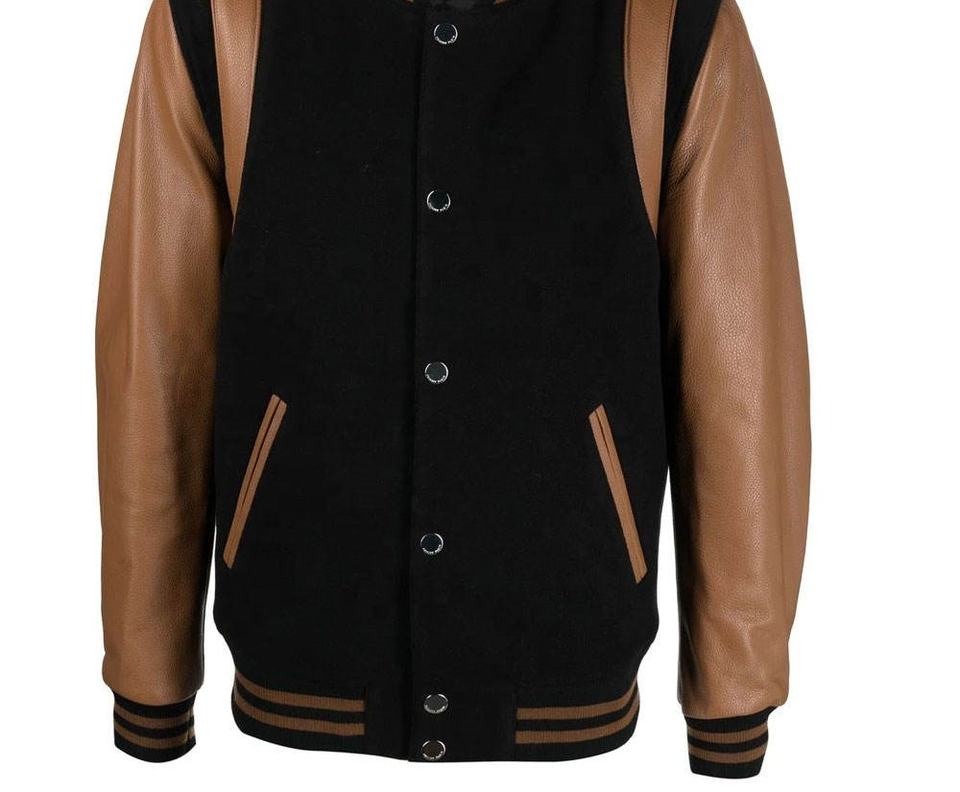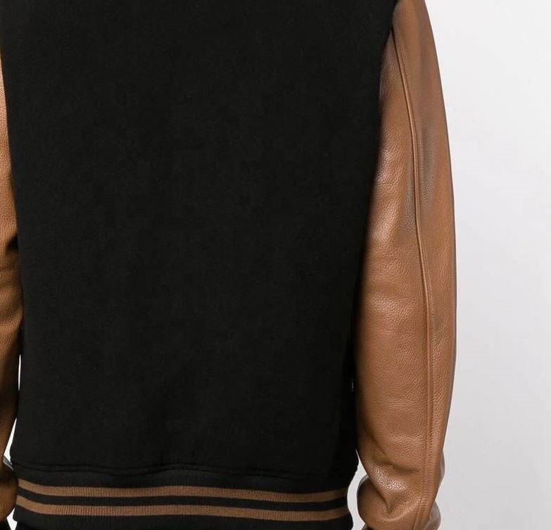 Blouson universitaire élégant pour homme, long, 100 % laine, toile imperméable, avec patch chenille brodé personnalisé et boutons en peau de mouton
