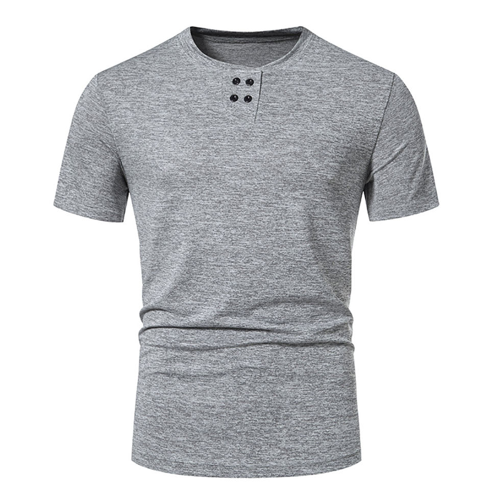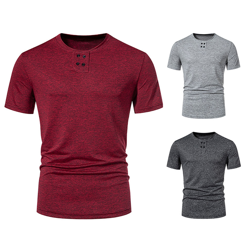 T-shirt décontracté pour homme, été, basique, uni, boutonné, manches courtes, col rond, extensible, coupe ajustée, anti-froissement, pour la salle de sport, l'entraînement, le sport