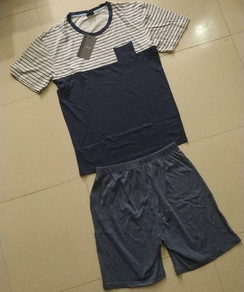 Men's Summer Casual Knitted Cotton Outwear Set Breathable Garment Dyed Branded Shorts T-Shirts Striped Pattern Original Labels