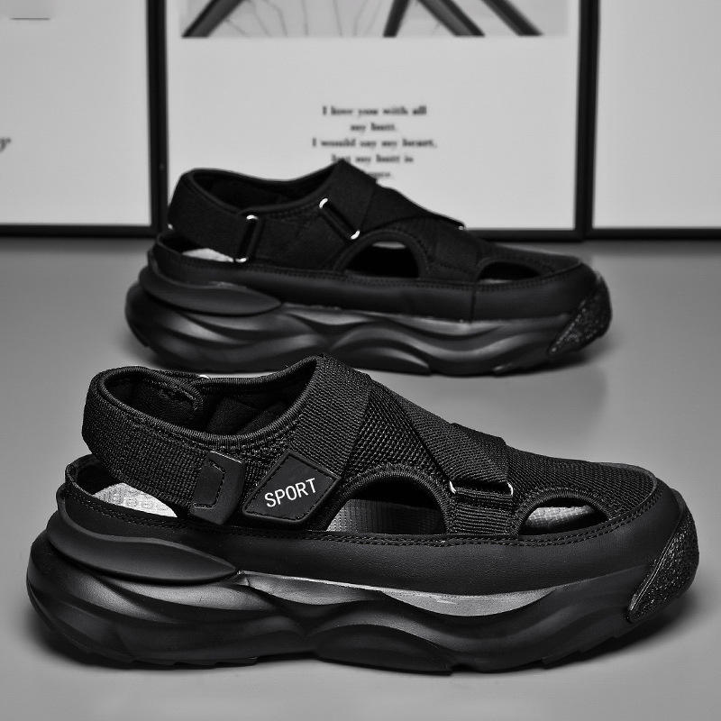 Sandales d'été pour hommes à bout fermé, plateforme respirante en maille, sangle réglable, semelle épaisse, chaussures de sport décontractées d'extérieur