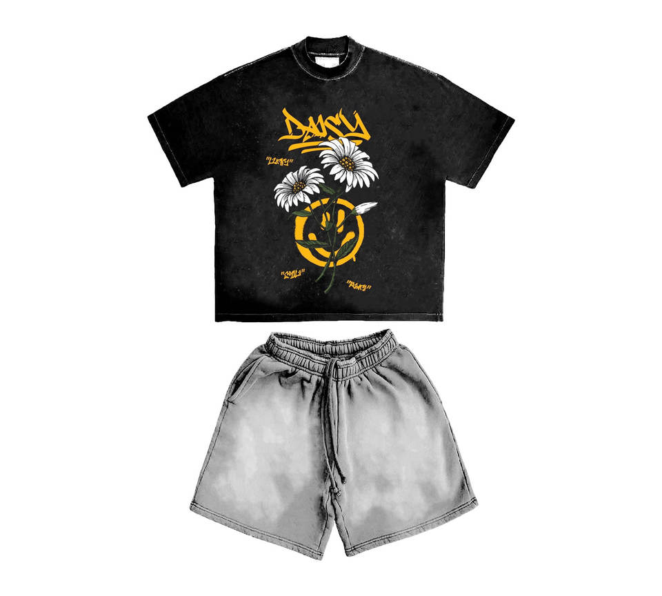 Ensembles de t-shirts d'été en coton pour hommes DTG imprimé graphique surdimensionné lavé à l'acide thermique grande taille Street Wear nouvelle conception