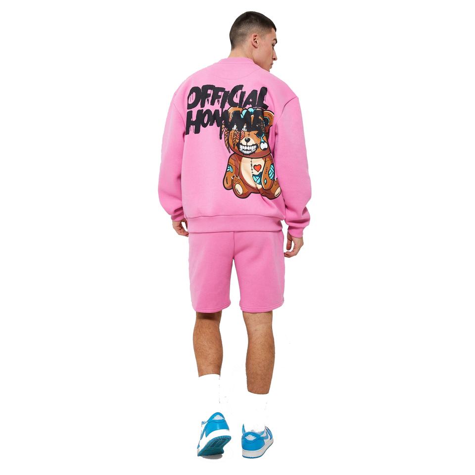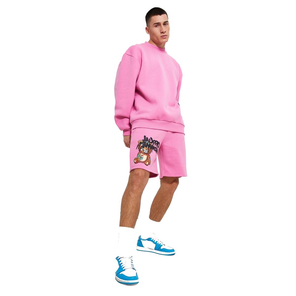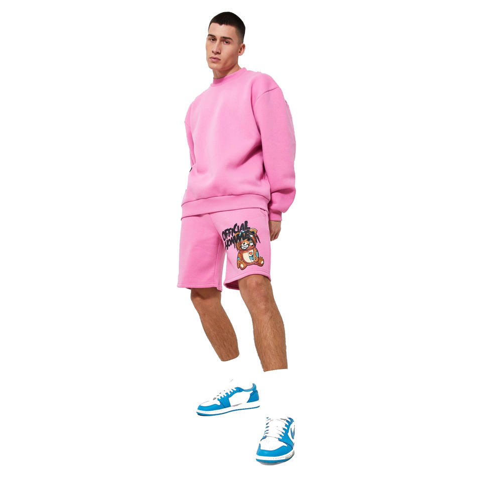 Ensemble d'entraînement d'été en coton pour hommes, sweat-shirt à col rond imprimé et short tricoté, méthode de tissage, service OEM ODM