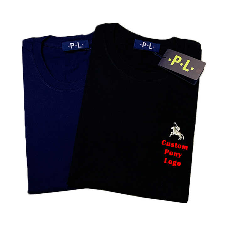 T-shirt d'été formel pour homme, uni, décontracté, coupe ample, à manches courtes, brodé, col rond, 100 % coton